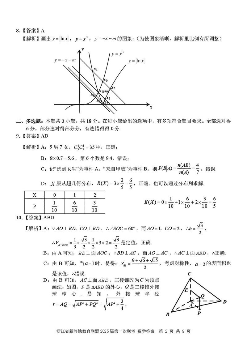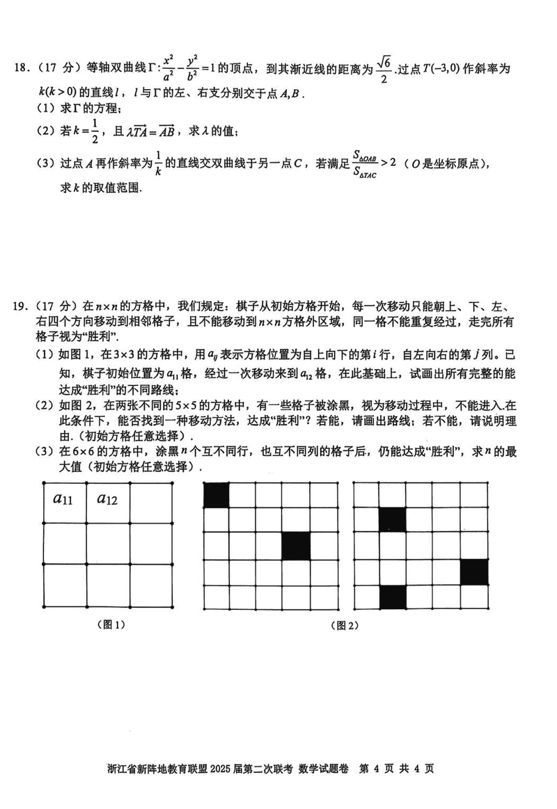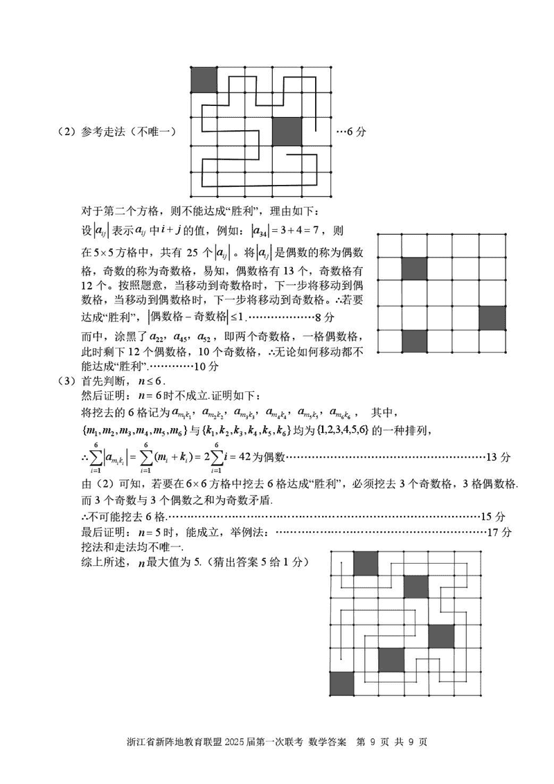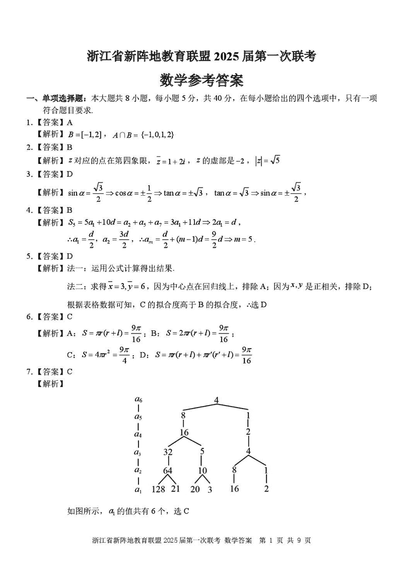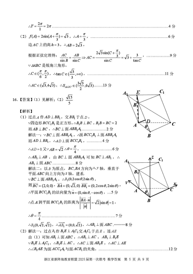 浙江新阵地教育联盟2025届高三2月联考数学试题及答案