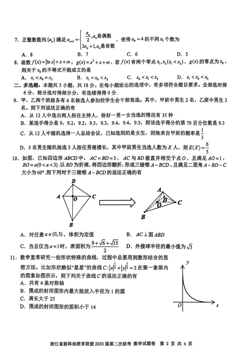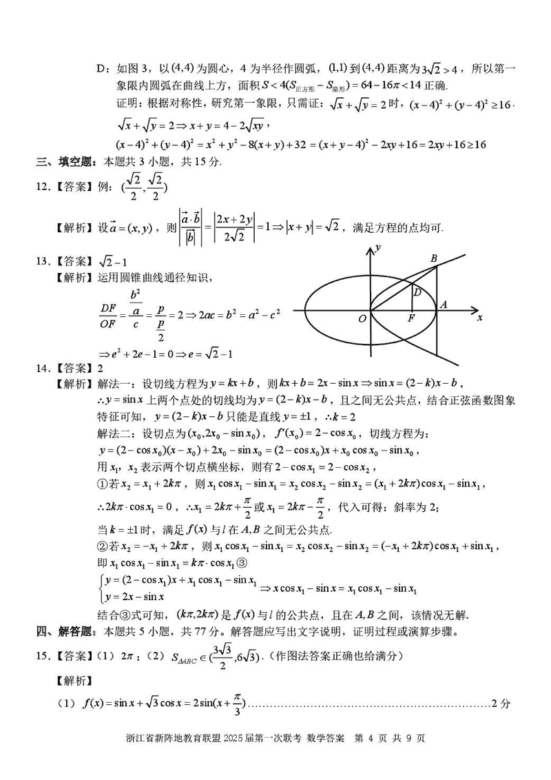 浙江新阵地教育联盟2025届高三2月联考数学考试已于近日开考,为方便考生考后及时查看考试情况,查漏补缺、弥补不足,本文整理了试题答案解析相关信息!