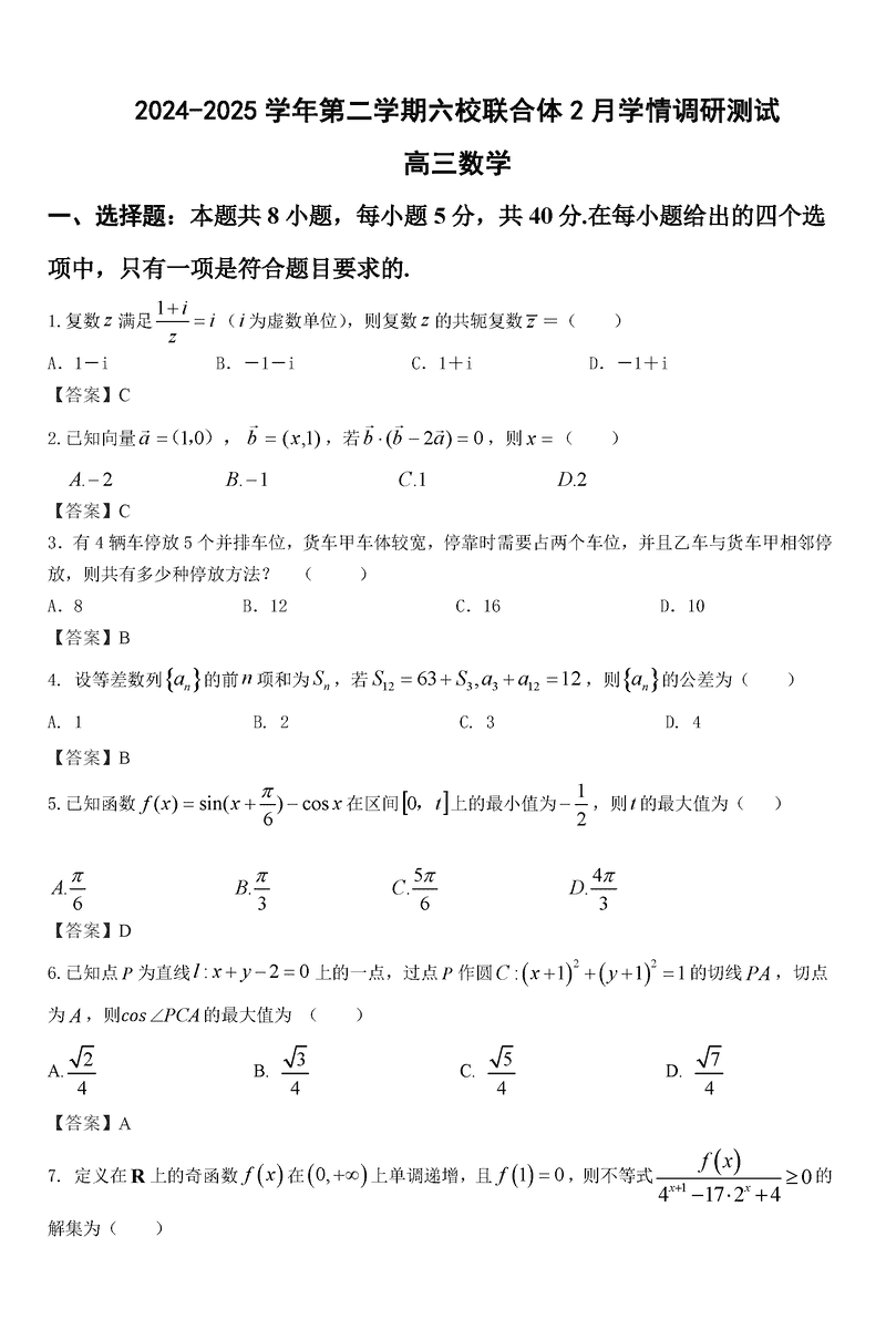 南京六校联合体2025届高三下学期2月调研数学考试已于近日开考,为方便考生考后及时查看考试情况,查漏补缺、弥补不足,本文整理了试题答案解析相关信息!