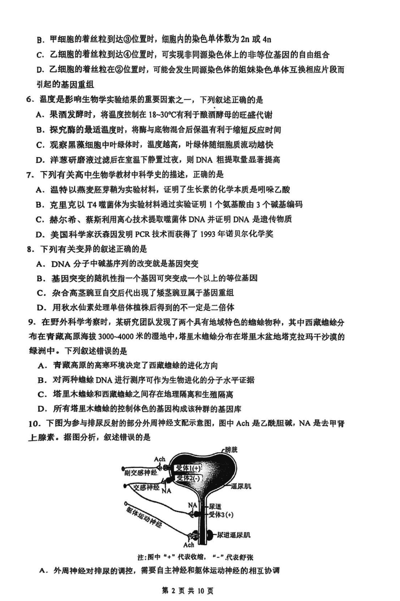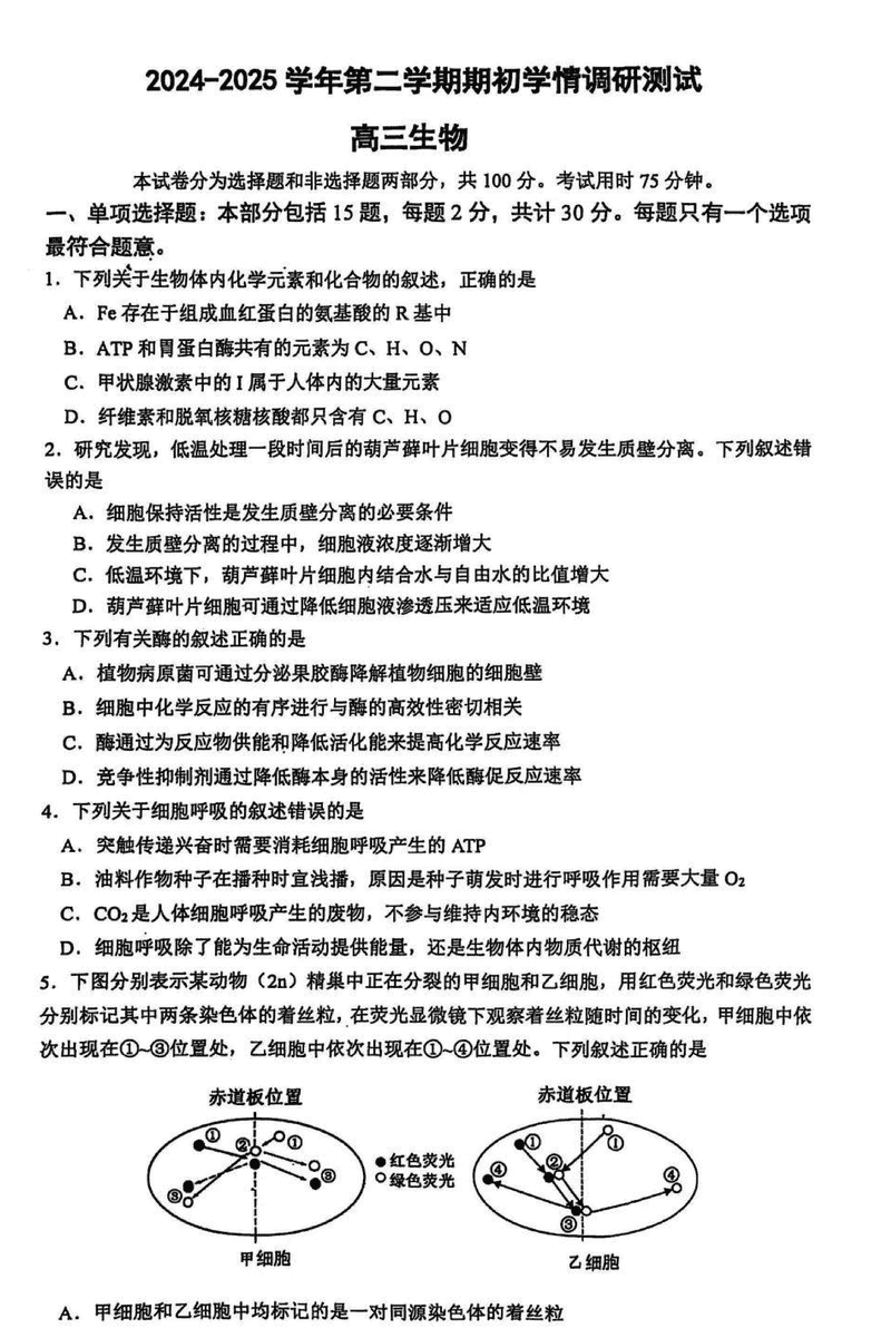 南京六校联合体2025届高三下学期2月调研生物试题及答案