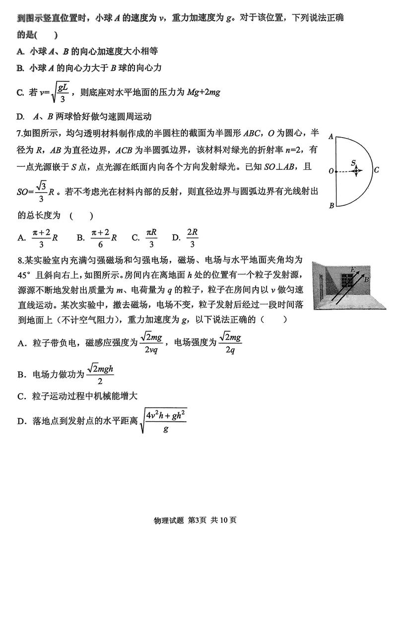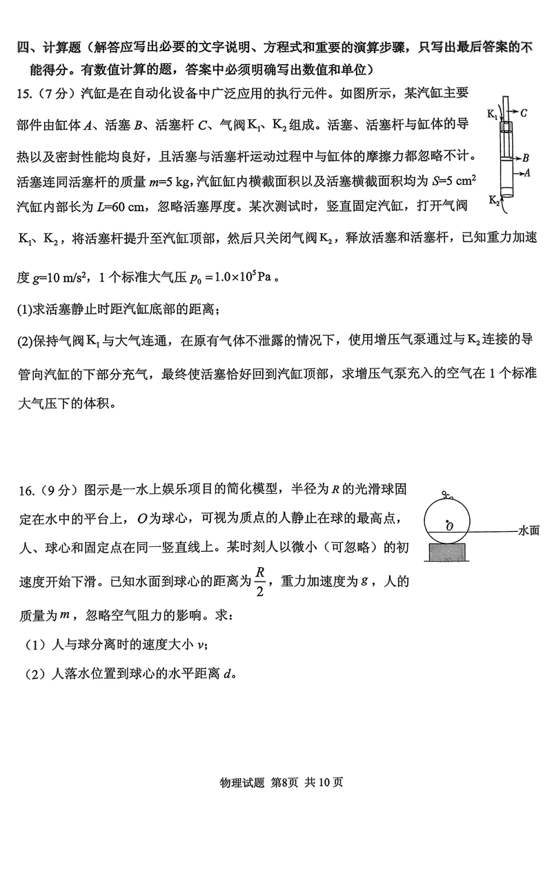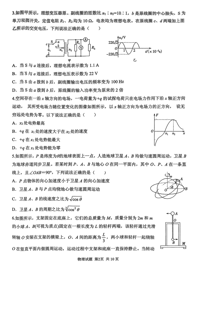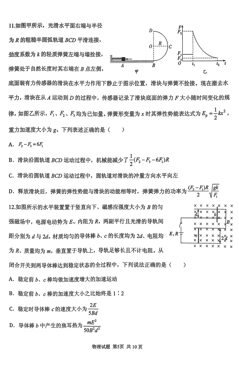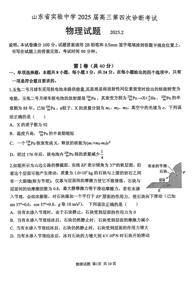 2025届山东省实验中学高三下学期第四次诊断物理试题及答案