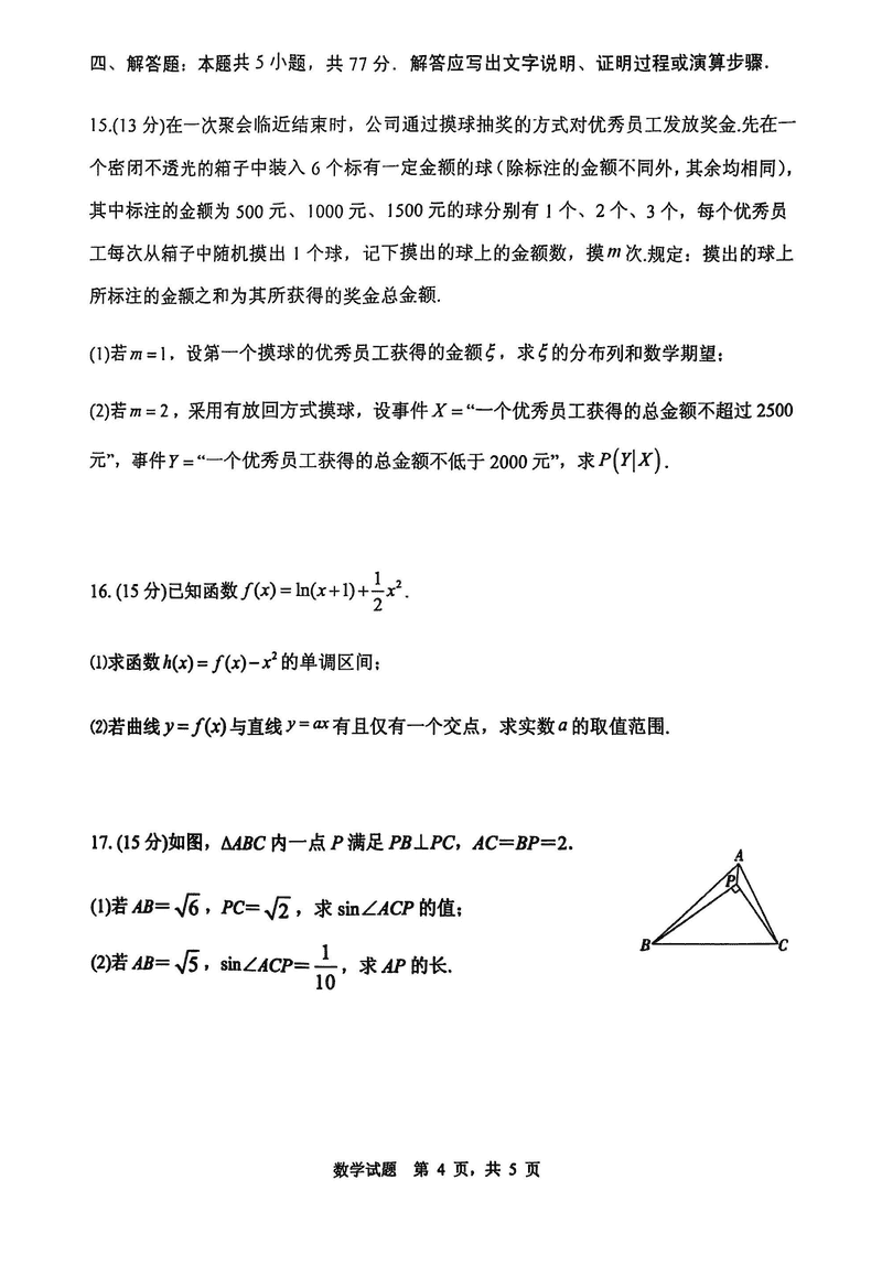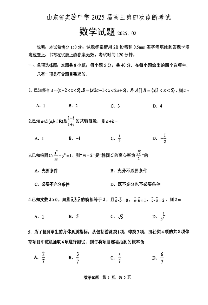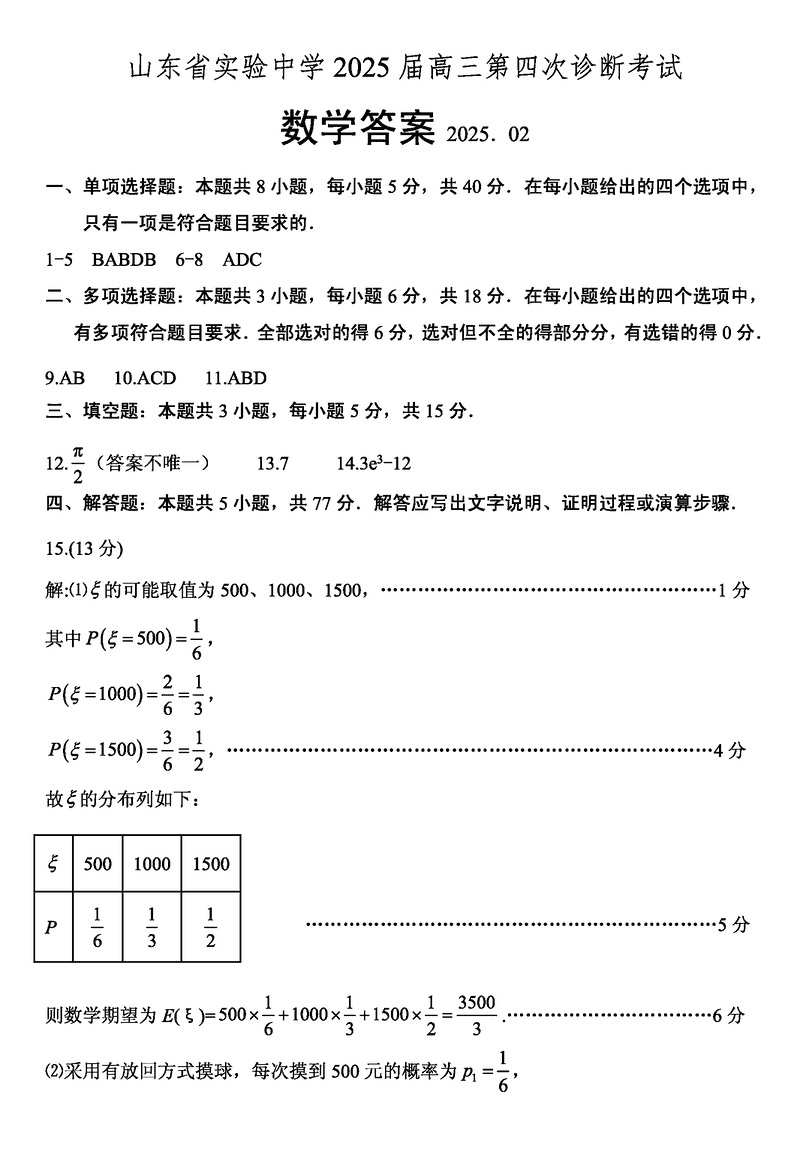 2025届山东省实验中学高三下学期第四次诊断数学考试已于近日开考,为方便考生考后及时查看考试情况,查漏补缺、弥补不足,本文整理了试题答案解析相关信息!
