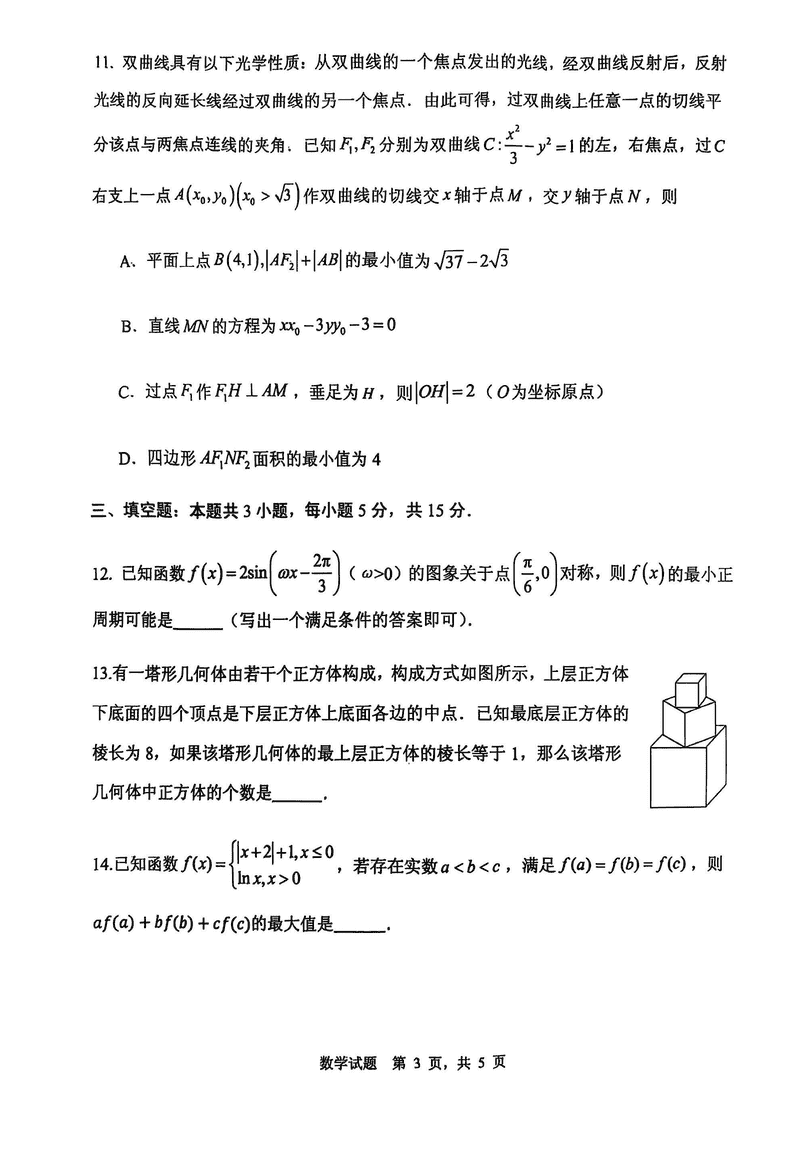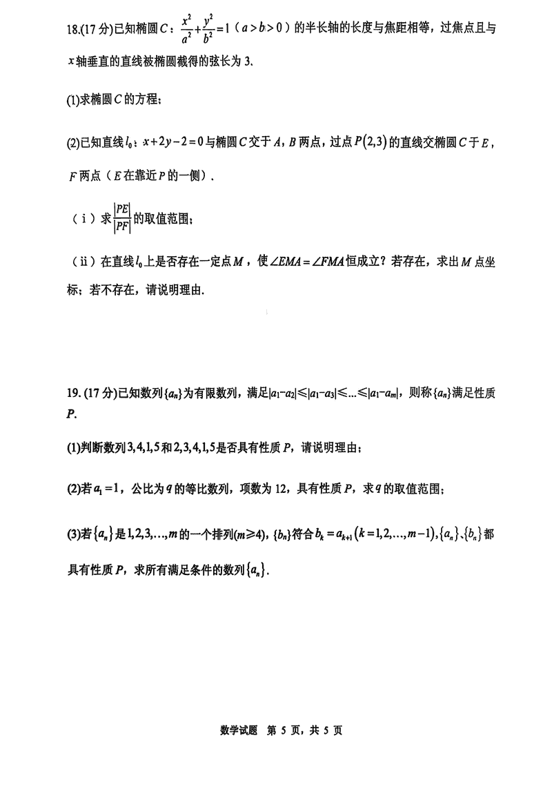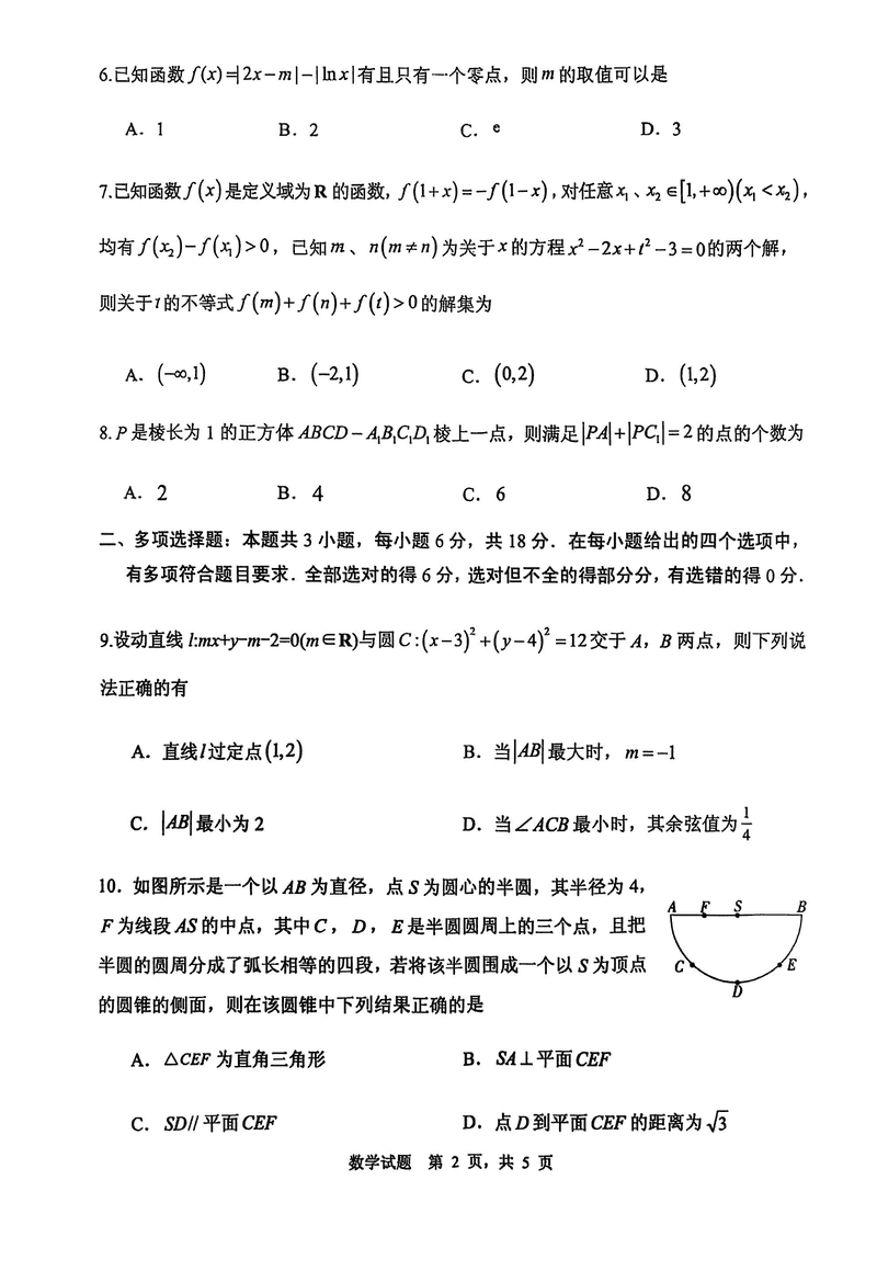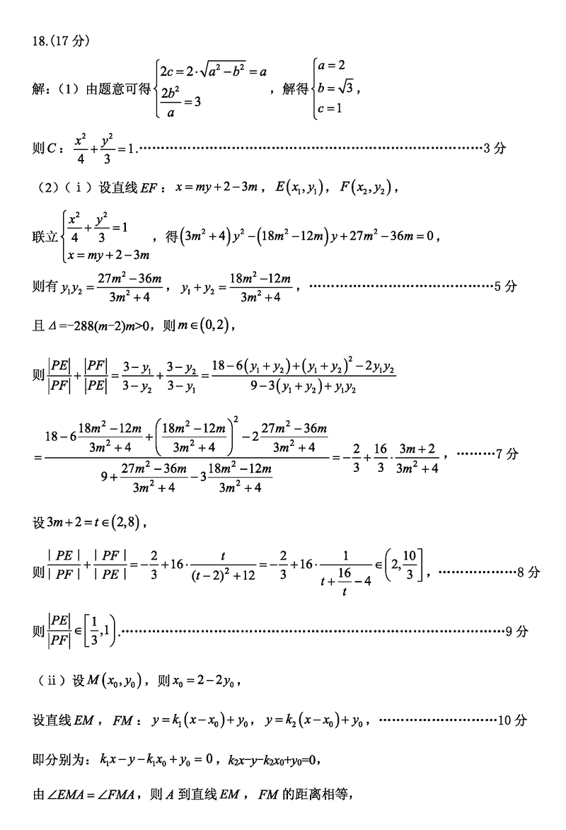 2025届山东省实验中学高三下学期第四次诊断数学试题及答案