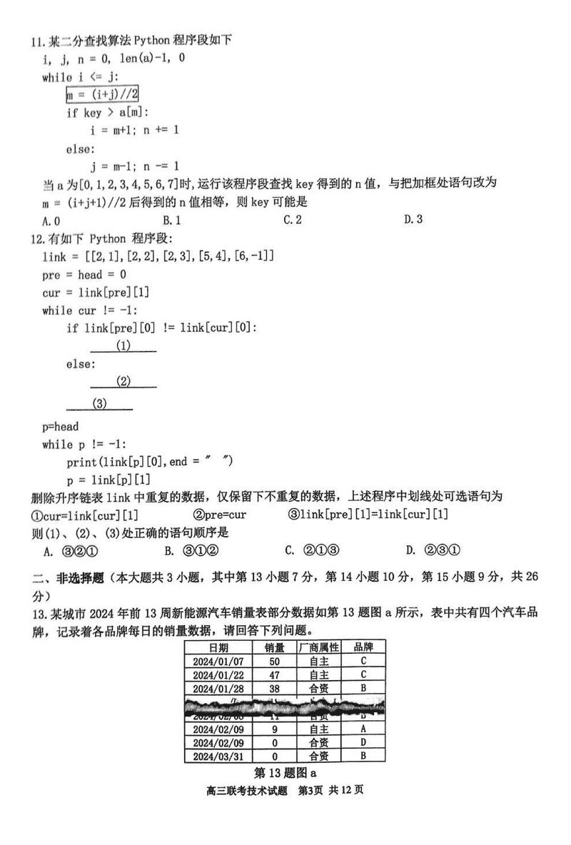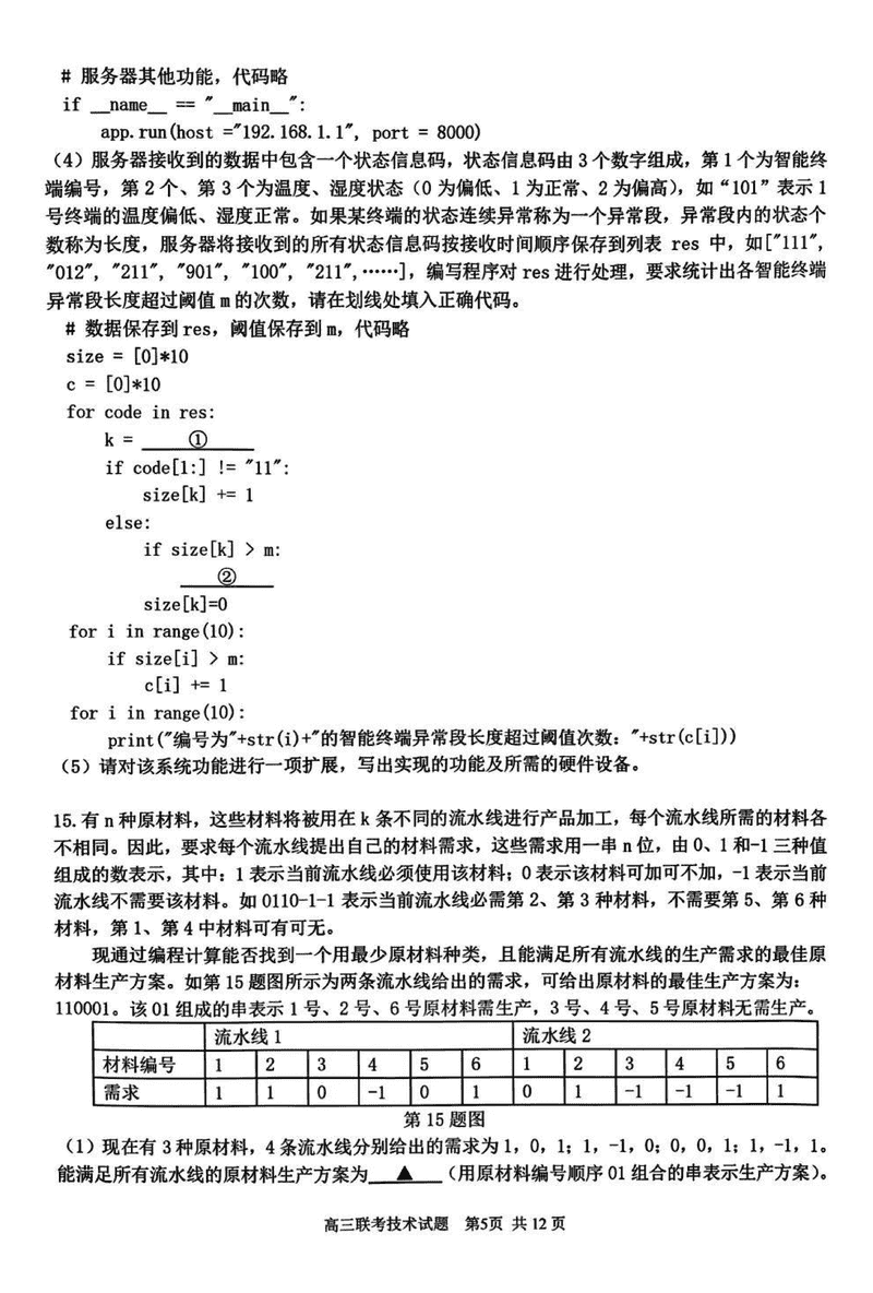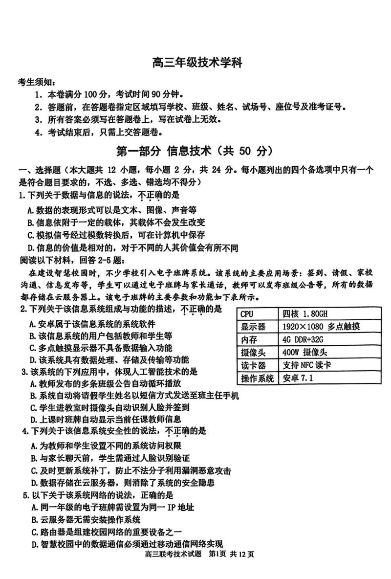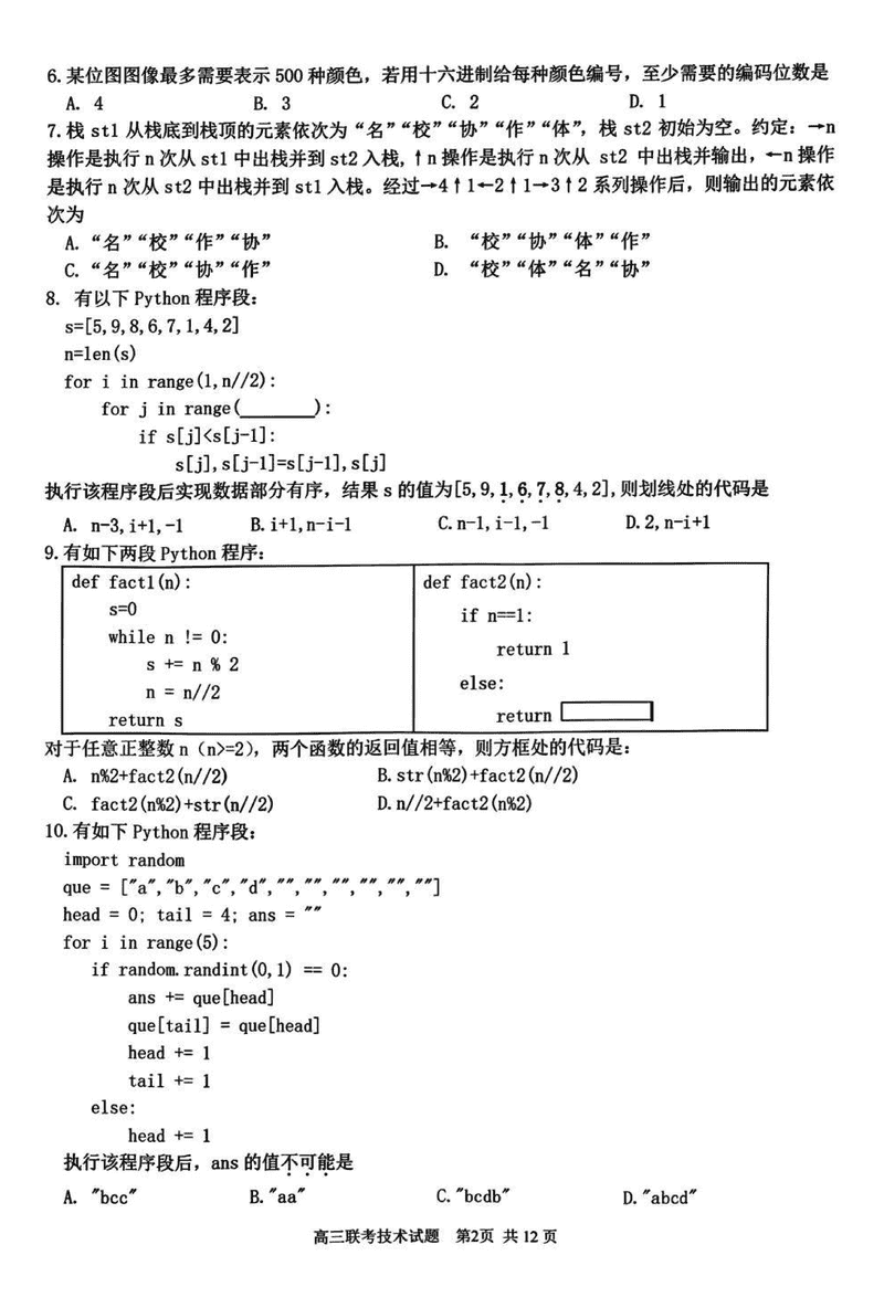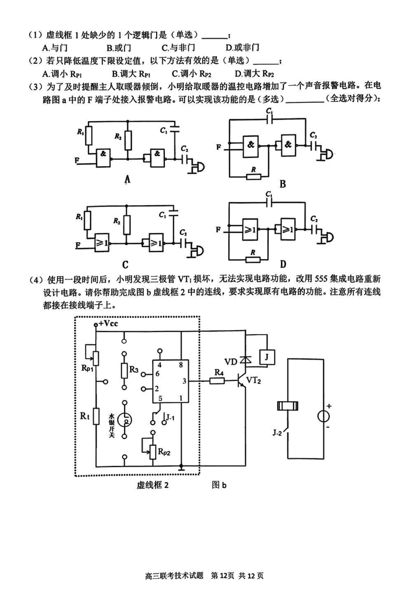 2025年2月浙江G12名校协作体高三返校考技术试题及答案