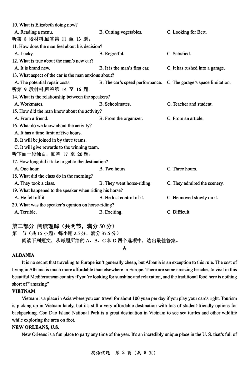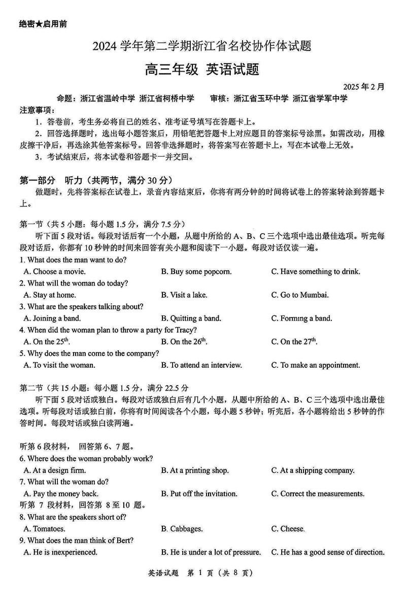 2025年2月浙江G12名校协作体高三返校考英语考试已于近日开考,为方便考生考后及时查看考试情况,查漏补缺、弥补不足,本文整理了试题答案解析相关信息!