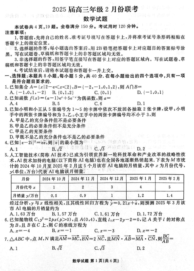 2025届广东省衡水金卷高三2月大联考数学试题及答案 时间:2025-02-15 广东 数学试题 2025届广东省衡水金卷高三2月大联考数学考试已于近日开考,为方便考生考后及时查看考试情况,查漏补缺、弥补不足,本文整理了试题答案解析相关信息! 汇总:2025届广东省衡水金卷高三2月大联考试题及答案汇总 数学试题及答案解析