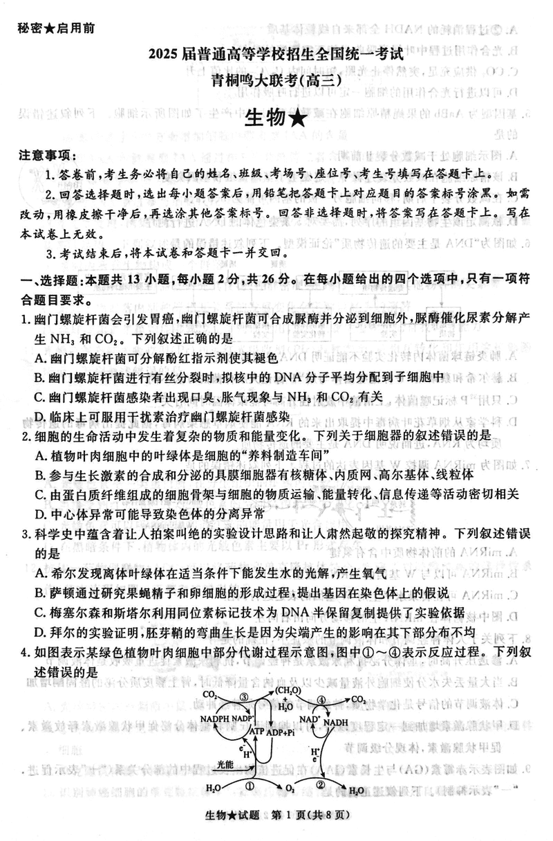 2025届河南青桐鸣高三2月联考生物试题及答案 时间:2025-02-15 河南 理综试题 2025届河南青桐鸣高三2月联考生物考试已于近日开考,为方便考生考后及时查看考试情况,查漏补缺、弥补不足,本文整理了试题答案解析相关信息! 汇总:2025届河南青桐鸣高三2月联考试题及答案汇总 生物试题及答案解析