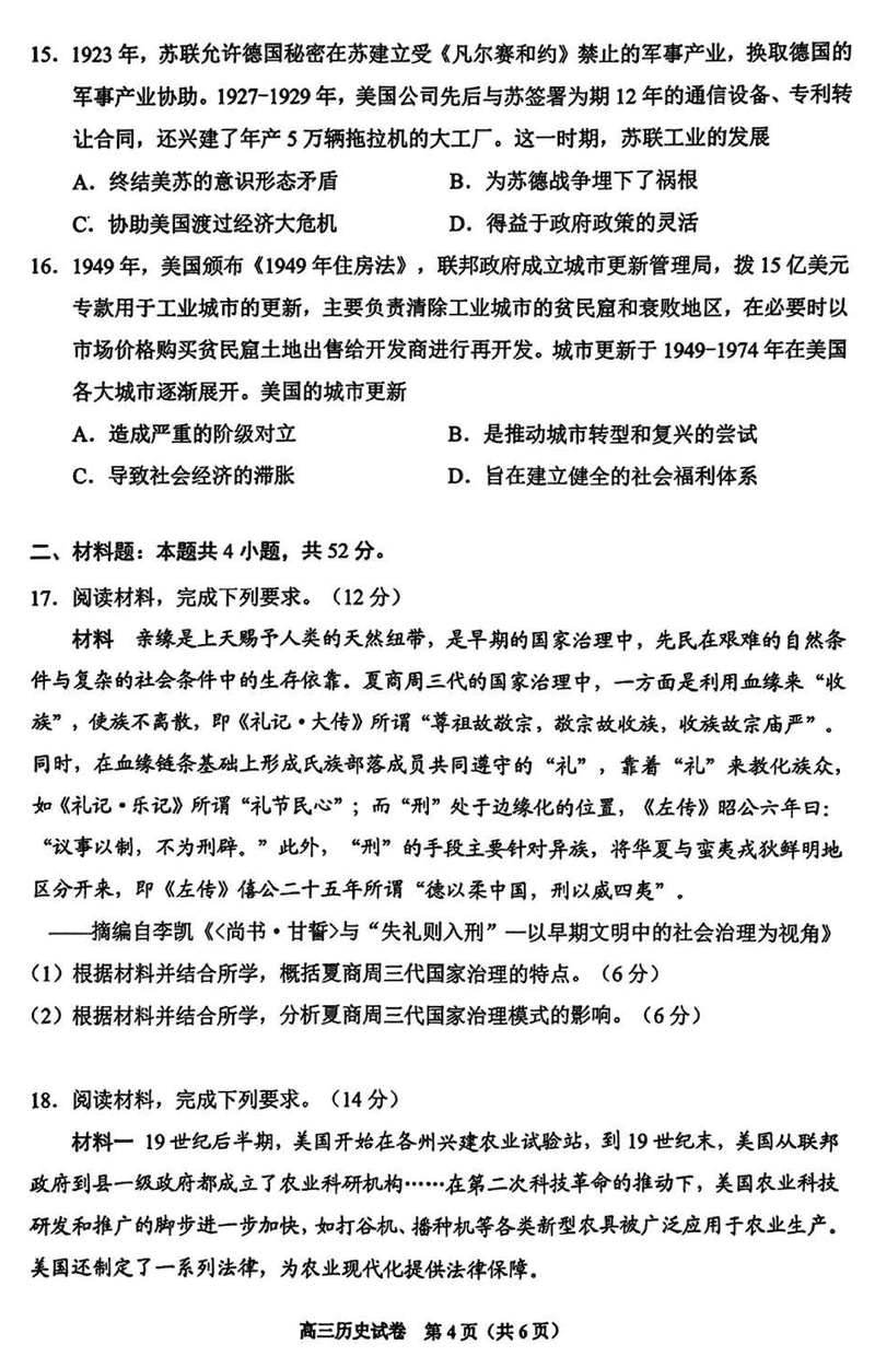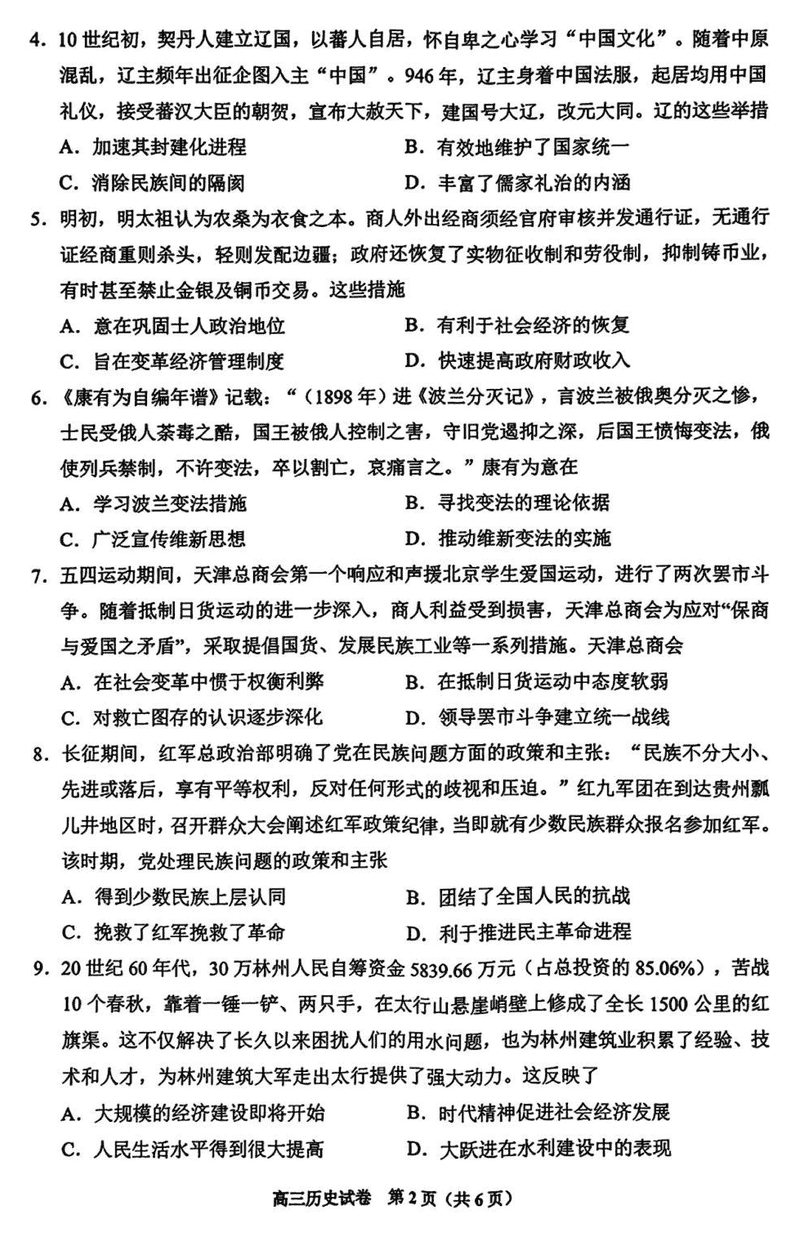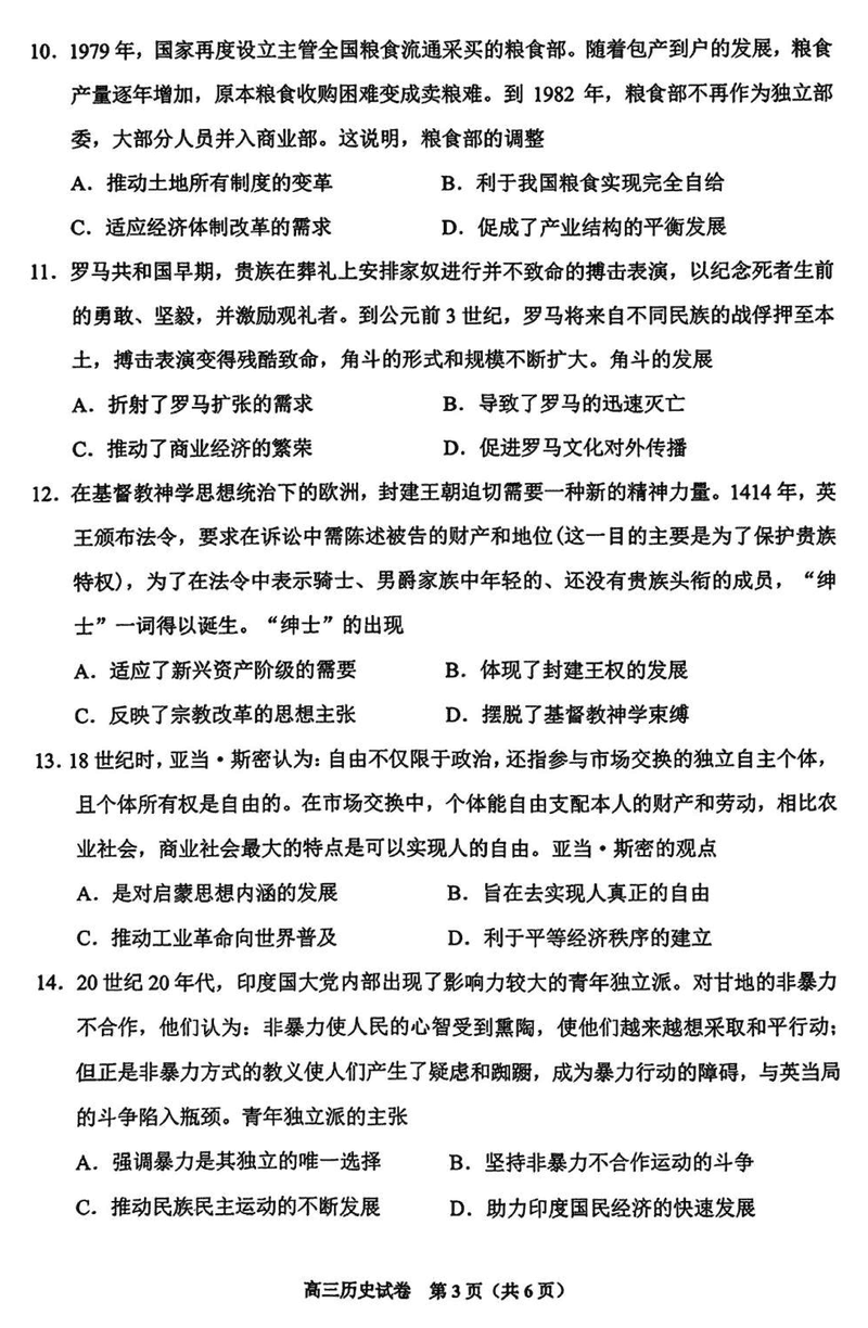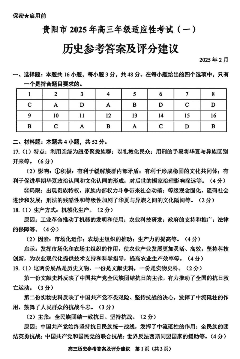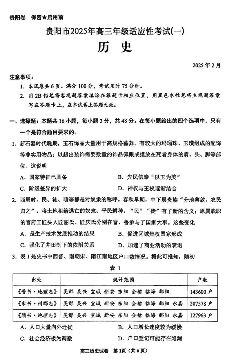 贵阳市2025年高三年级适应性考试(一)历史试题及答案