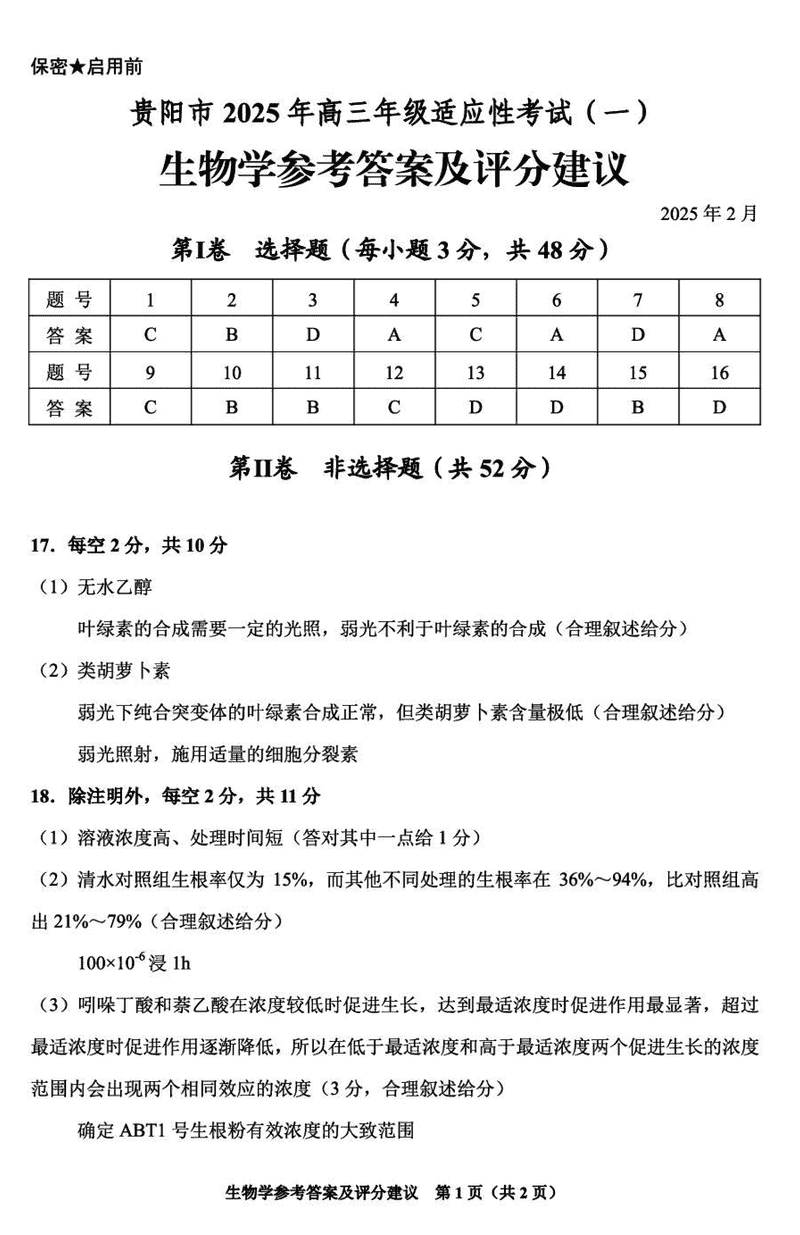 贵阳市2025年高三年级适应性考试(一)生物考试已于近日开考,为方便考生考后及时查看考试情况,查漏补缺、弥补不足,本文整理了试题答案解析相关信息!