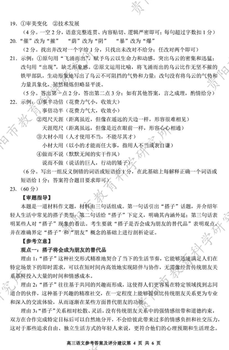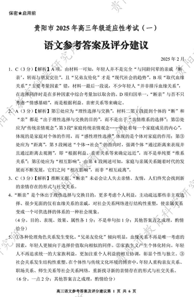 贵阳市2025年高三年级适应性考试(一)语文考试已于近日开考,为方便考生考后及时查看考试情况,查漏补缺、弥补不足,本文整理了试题答案解析相关信息!