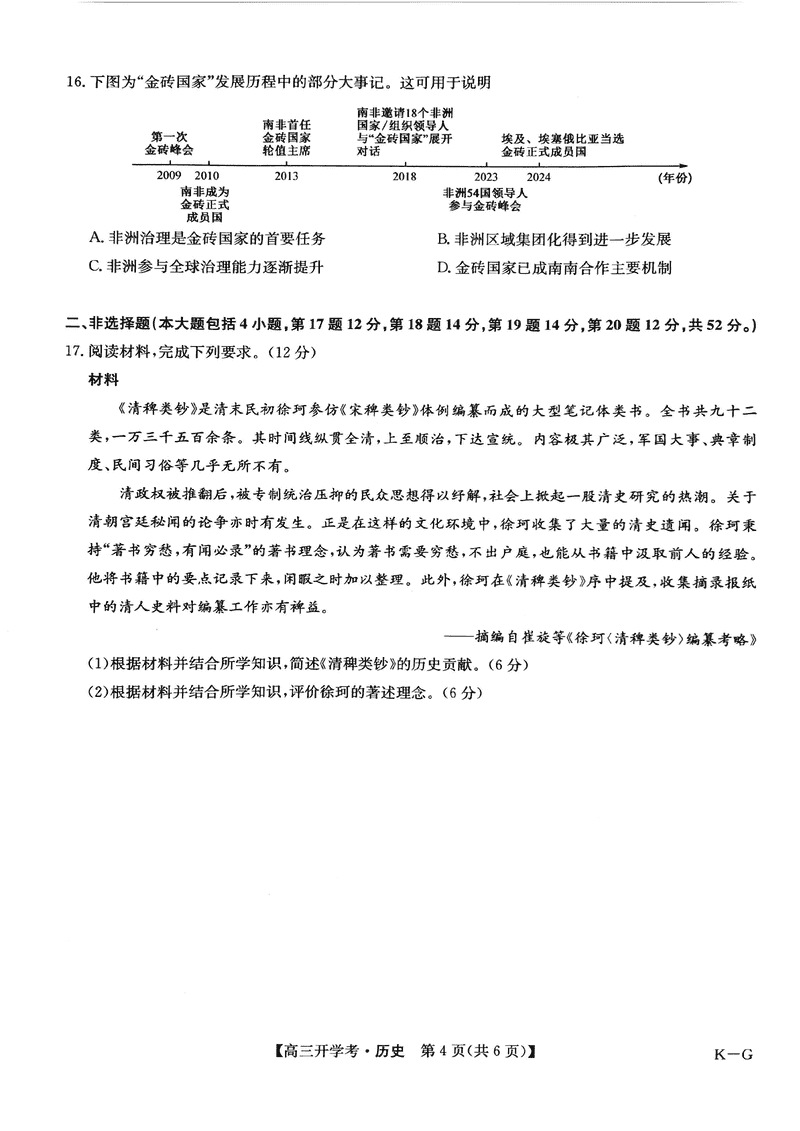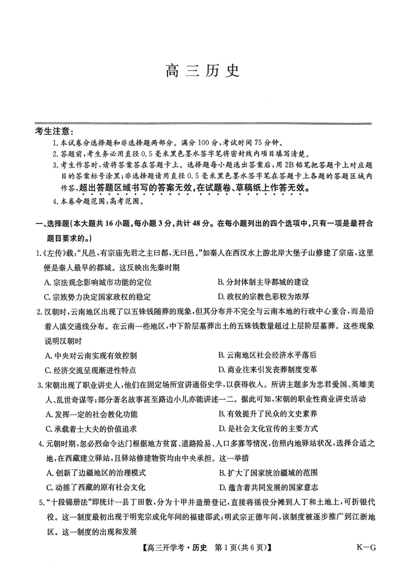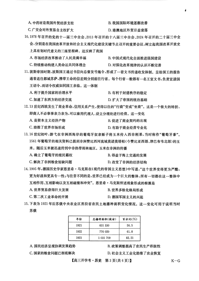 九师联盟2025届高三2月开学考历史试题及答案 时间:2025-02-16 文综试题 九师联盟2025届高三2月开学考历史考试已于近日开考,为方便考生考后及时查看考试情况,查漏补缺、弥补不足,本文整理了试题答案解析相关信息! 汇总:九师联盟2025届高三2月开学考试题及答案汇总 历史试题及答案解析