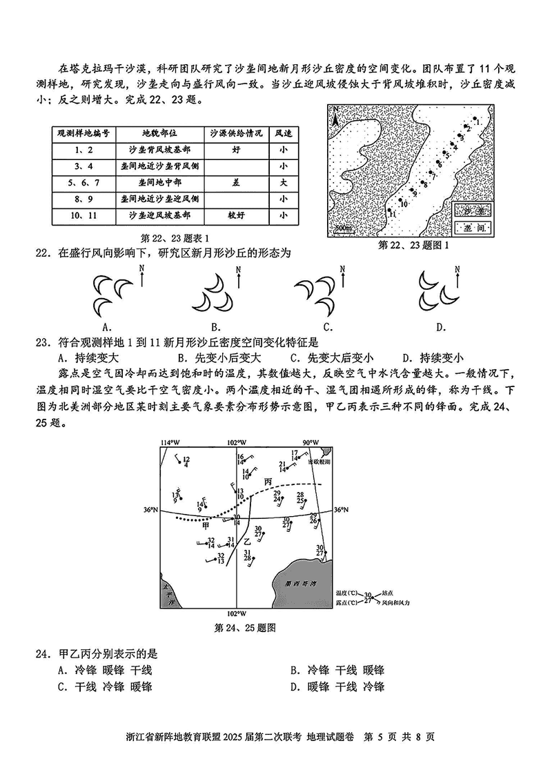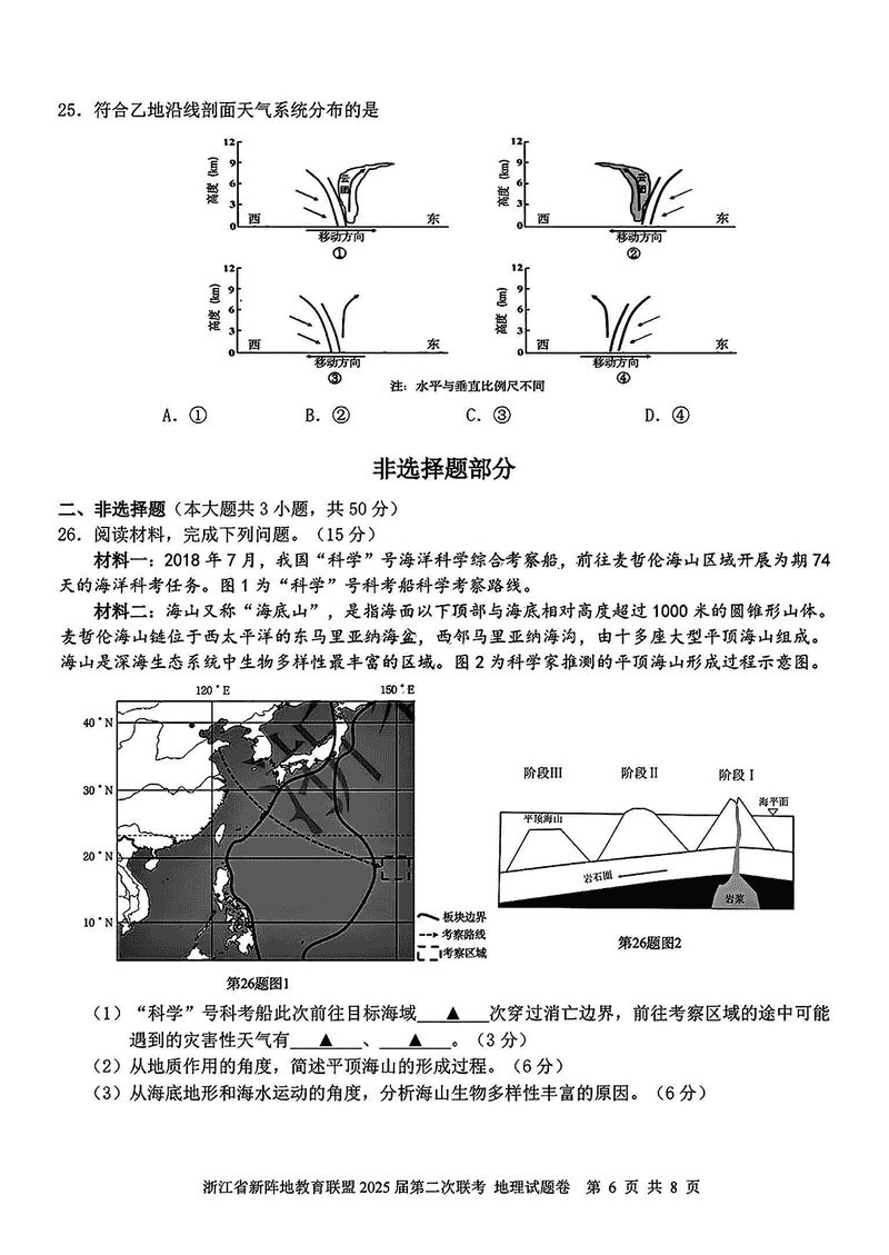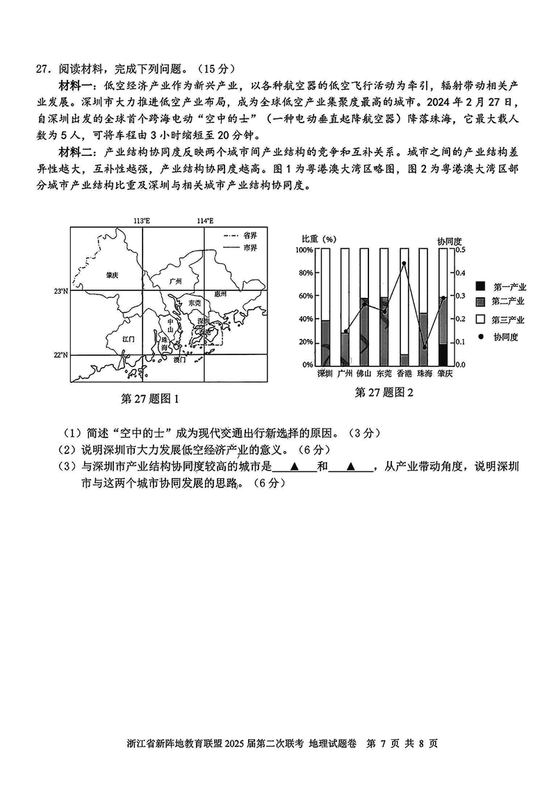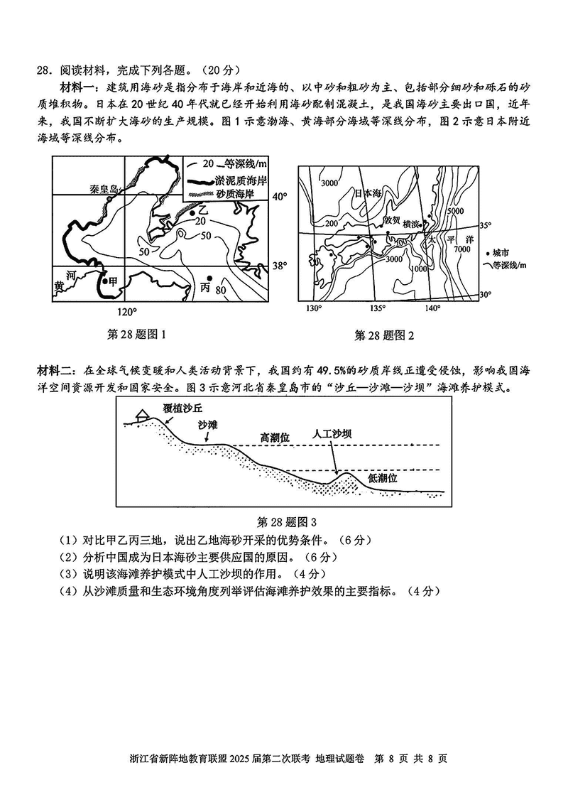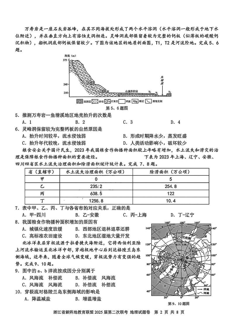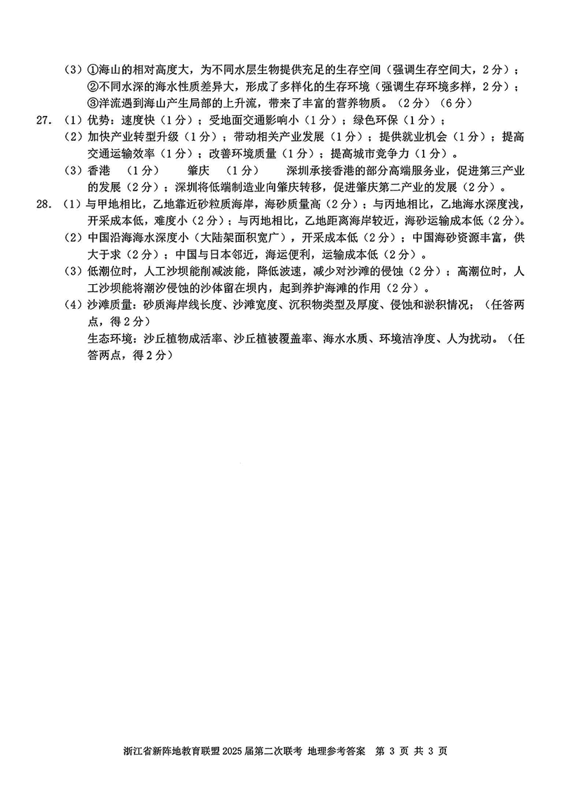 浙江新阵地教育联盟2025届高三第二次联考地理试题及答案