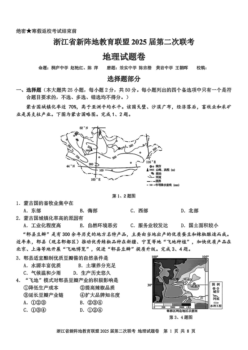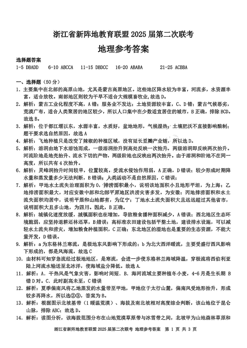 浙江新阵地教育联盟2025届高三第二次联考地理考试已于近日开考,为方便考生考后及时查看考试情况,查漏补缺、弥补不足,本文整理了试题答案解析相关信息!