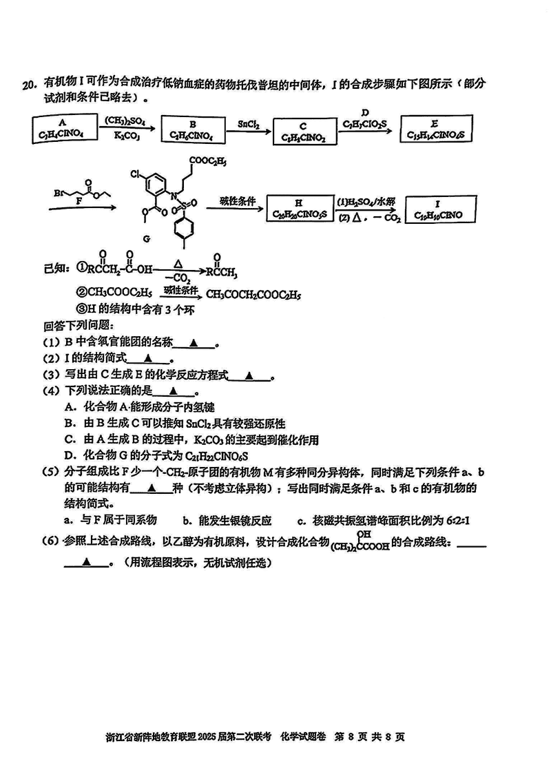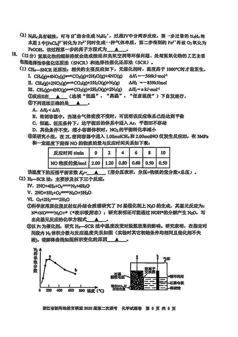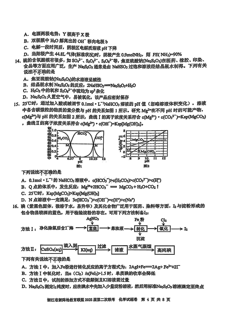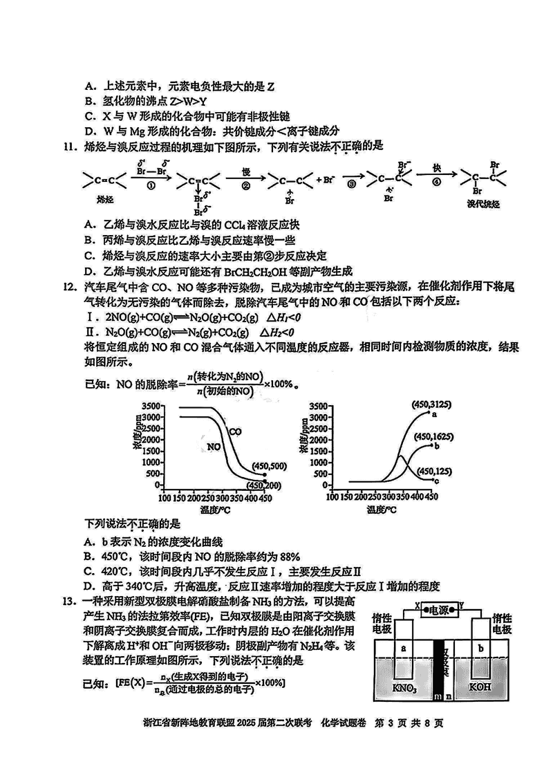 浙江新阵地教育联盟2025届高三第二次联考化学试题及答案