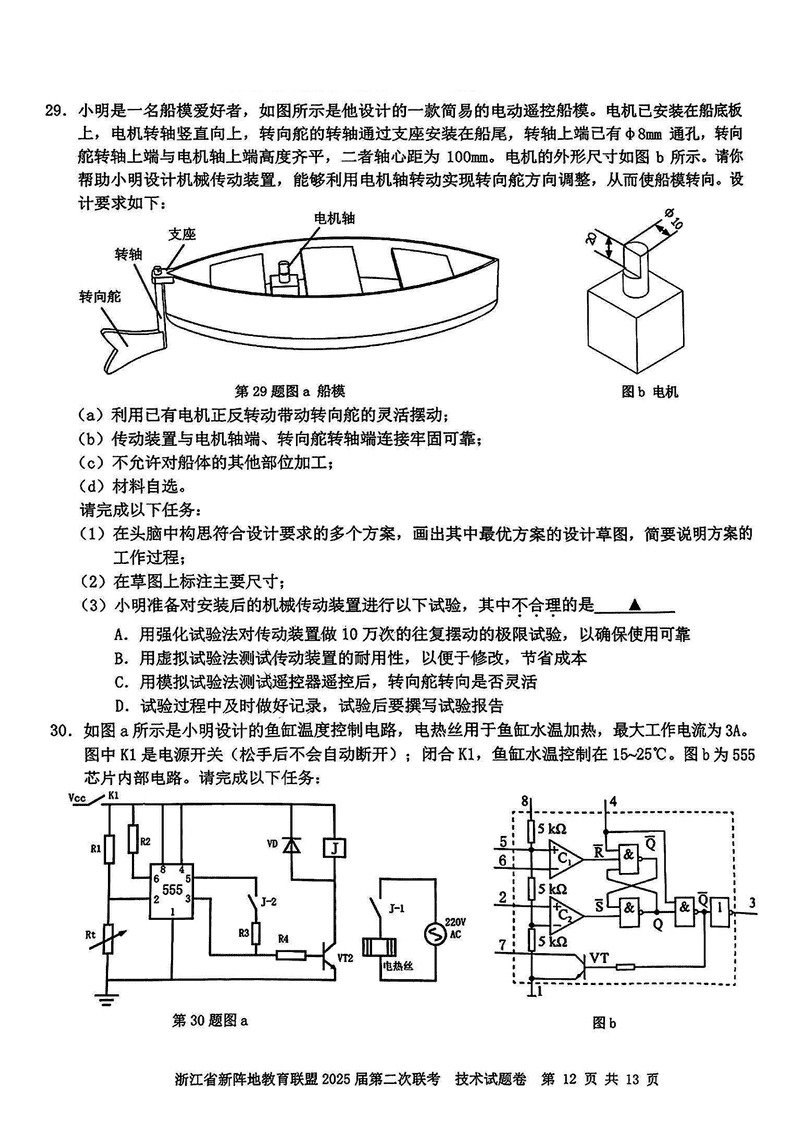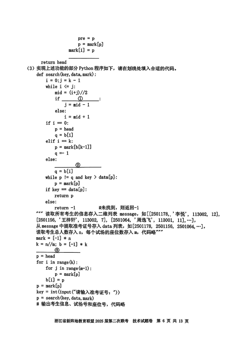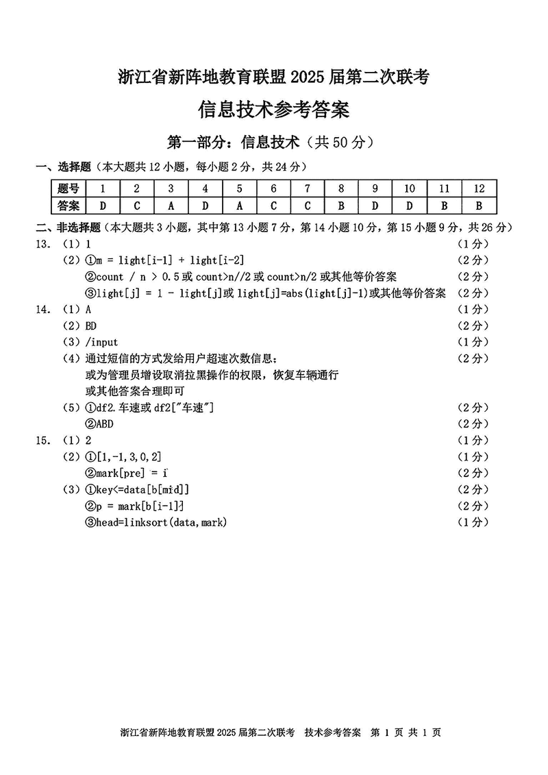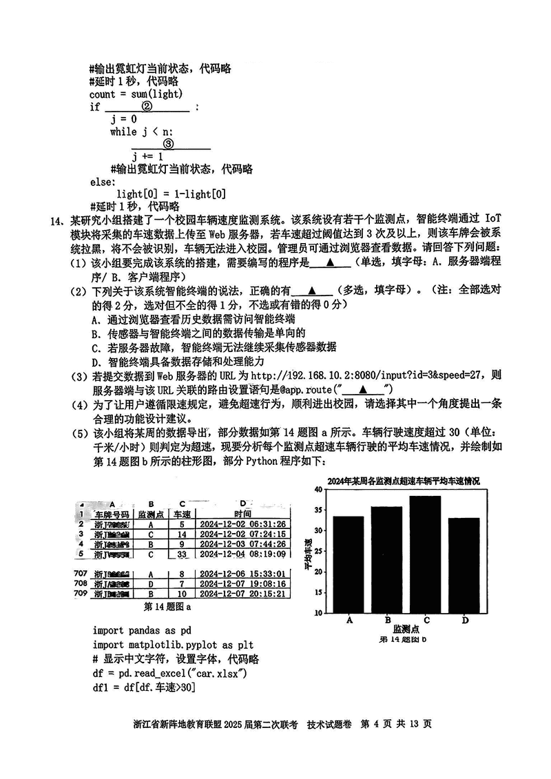 浙江新阵地教育联盟2025届高三第二次联考技术试题及答案