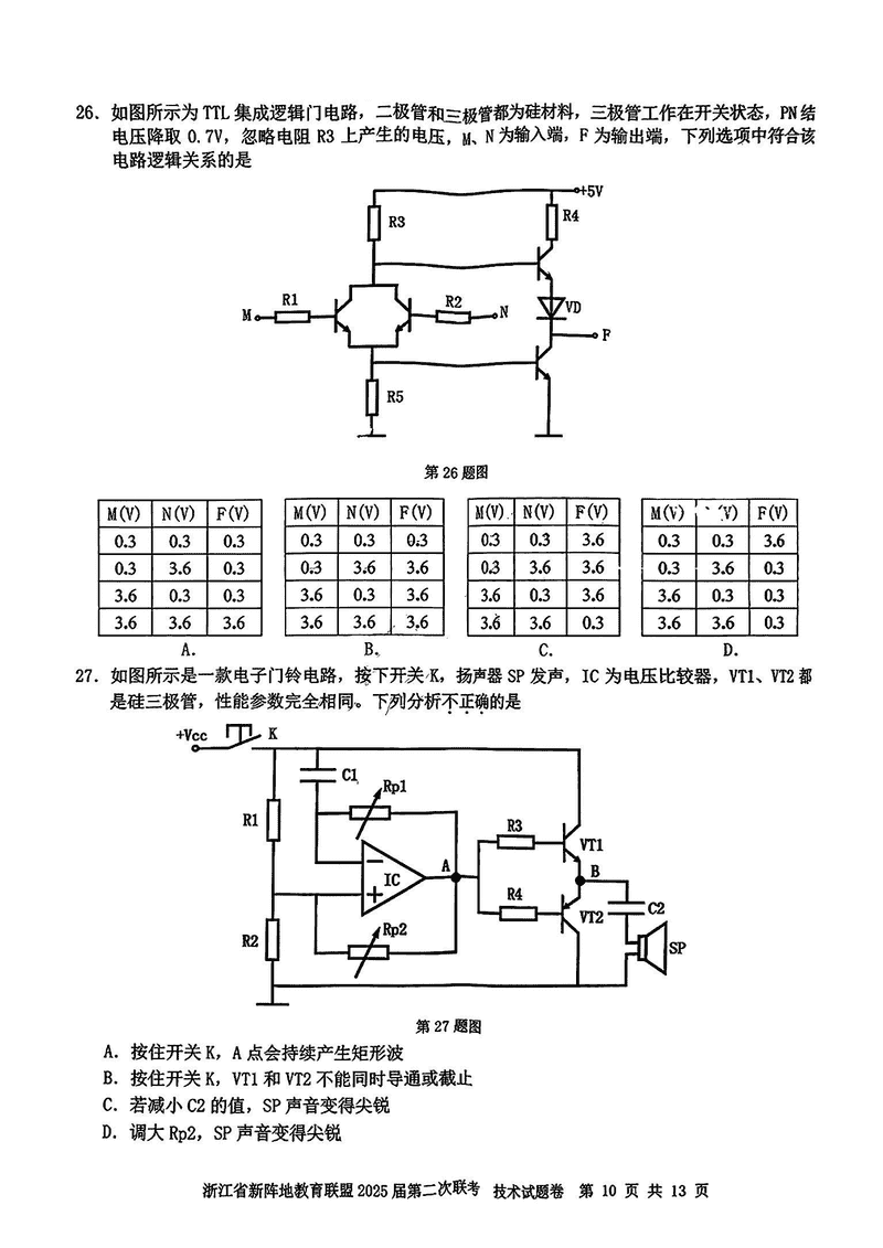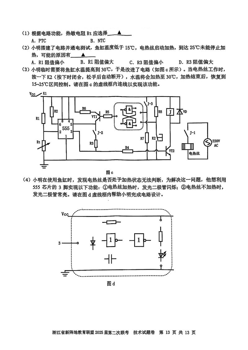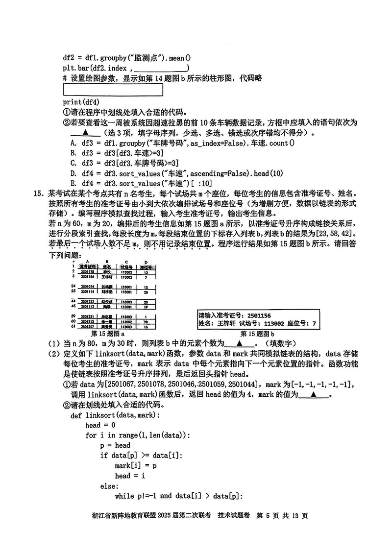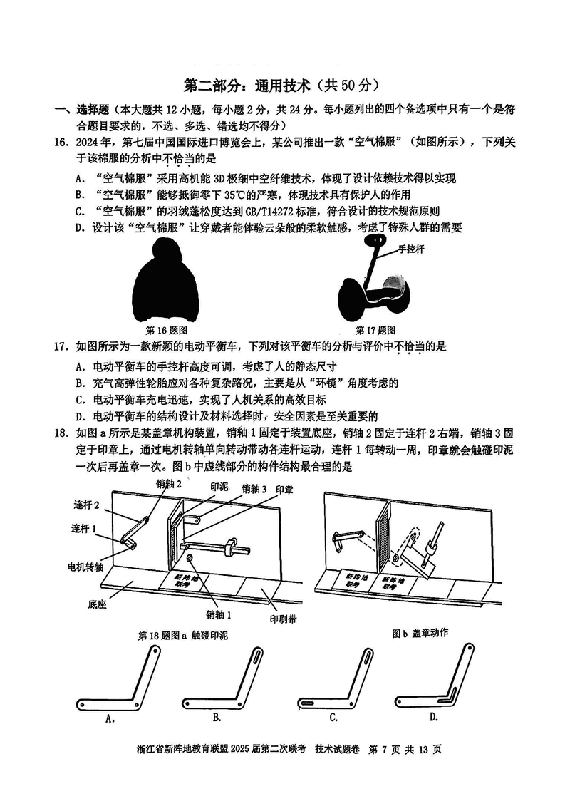 浙江新阵地教育联盟2025届高三第二次联考技术试题及答案