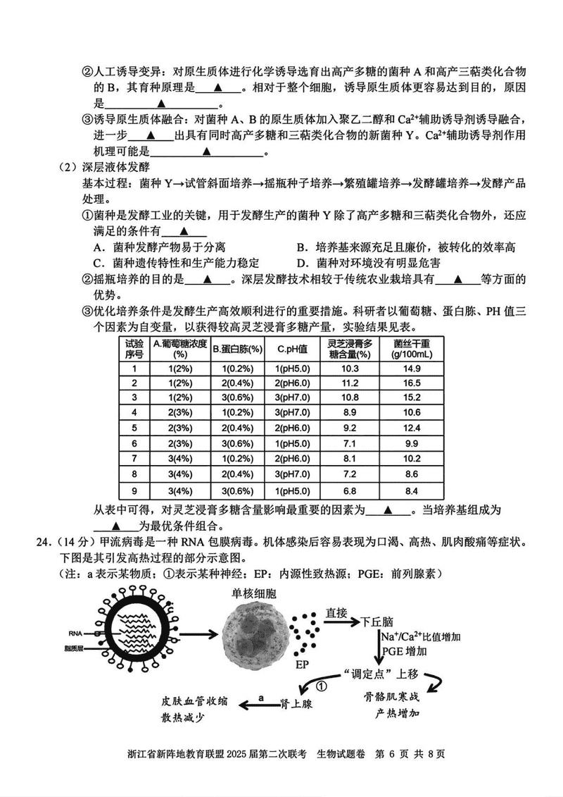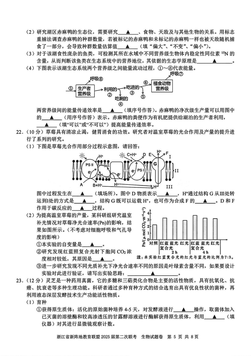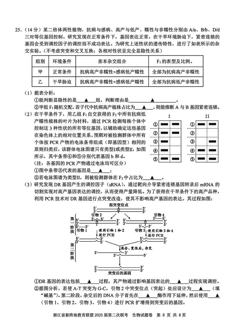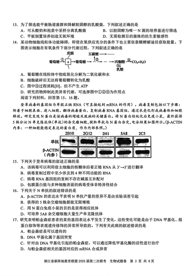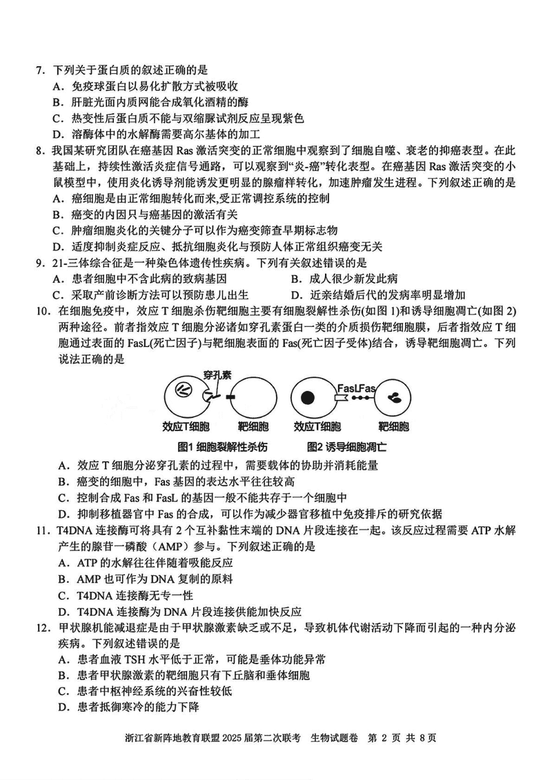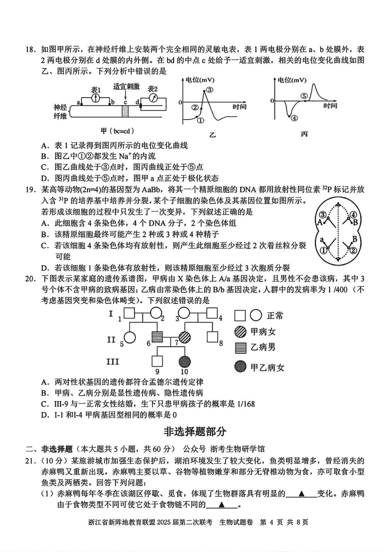 浙江新阵地教育联盟2025届高三第二次联考生物试题及答案