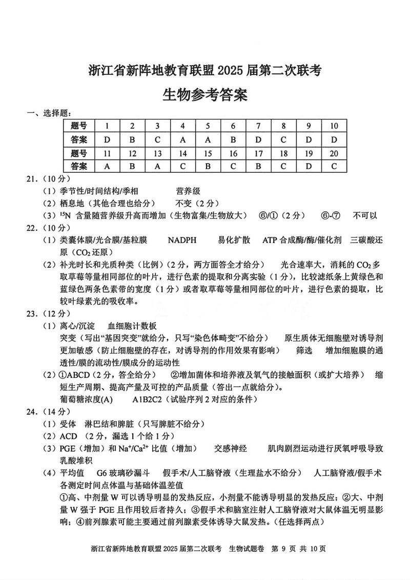 浙江新阵地教育联盟2025届高三第二次联考生物考试已于近日开考,为方便考生考后及时查看考试情况,查漏补缺、弥补不足,本文整理了试题答案解析相关信息!