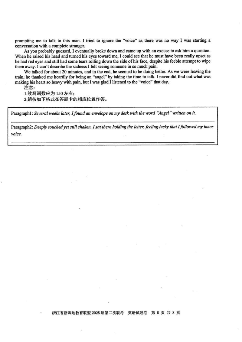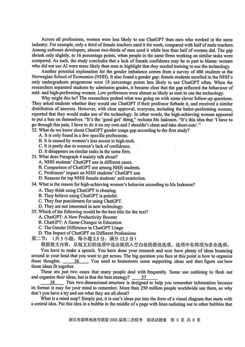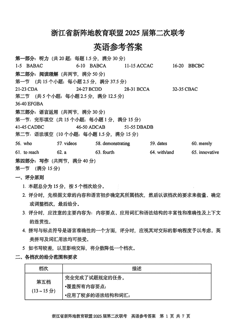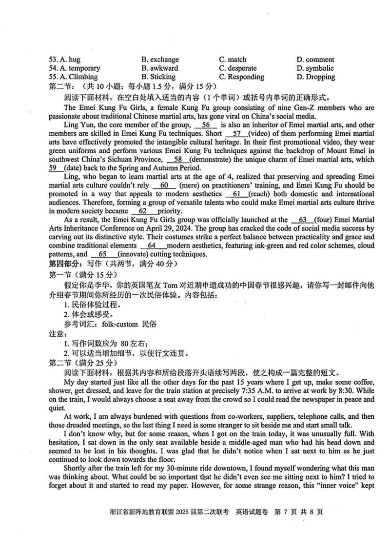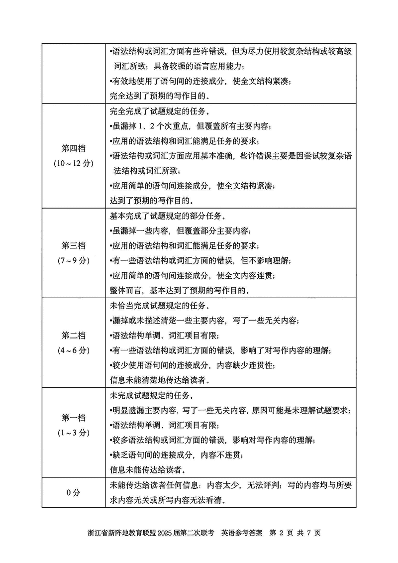 浙江新阵地教育联盟2025届高三第二次联考英语试题及答案