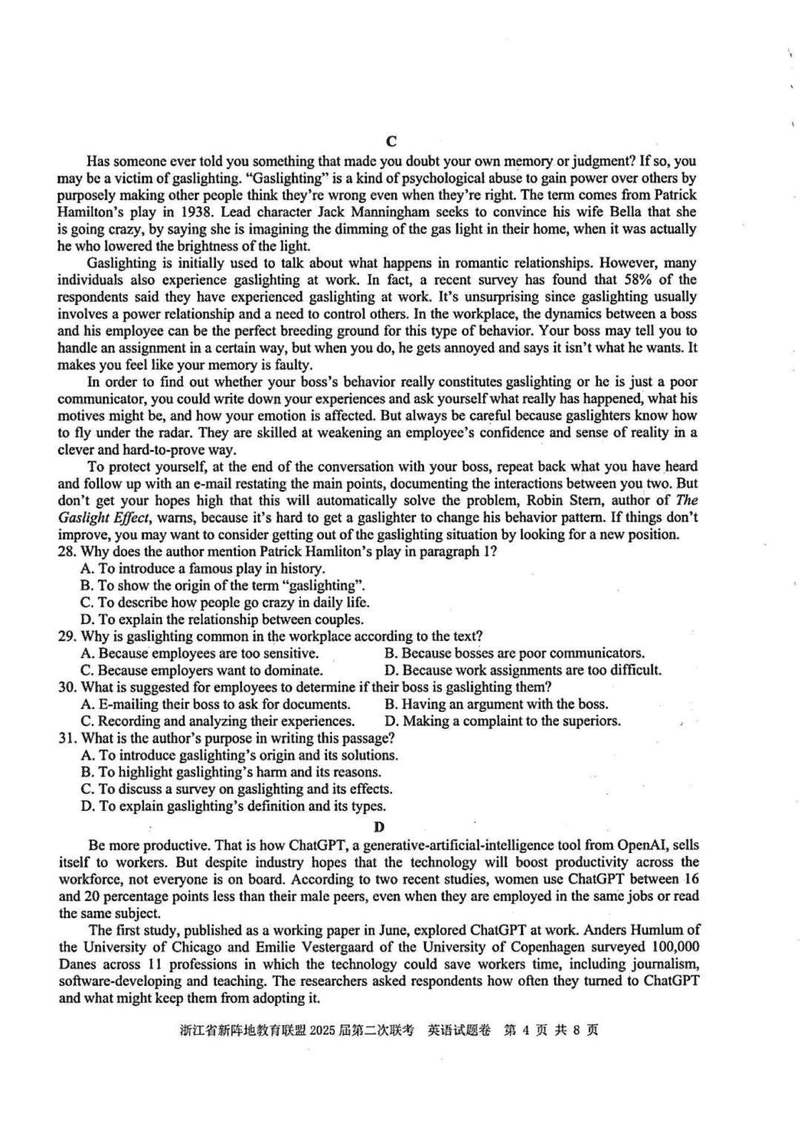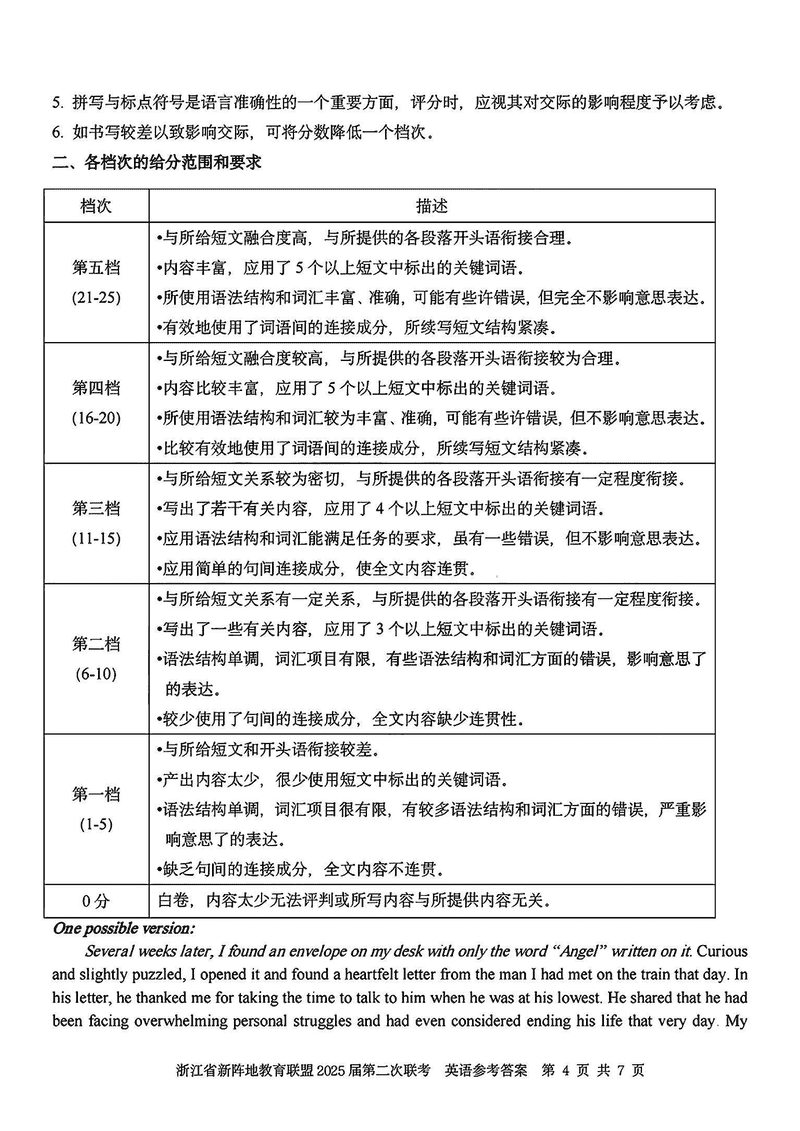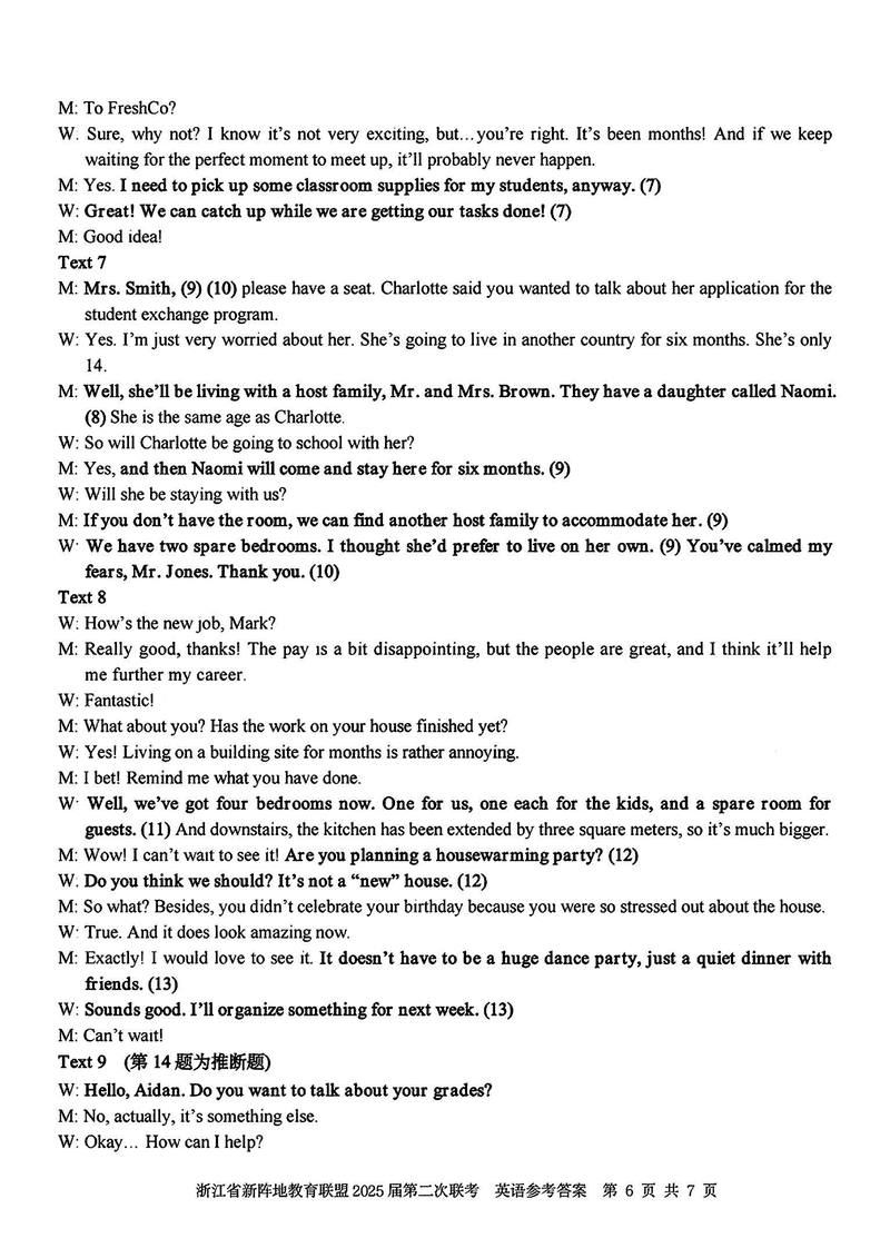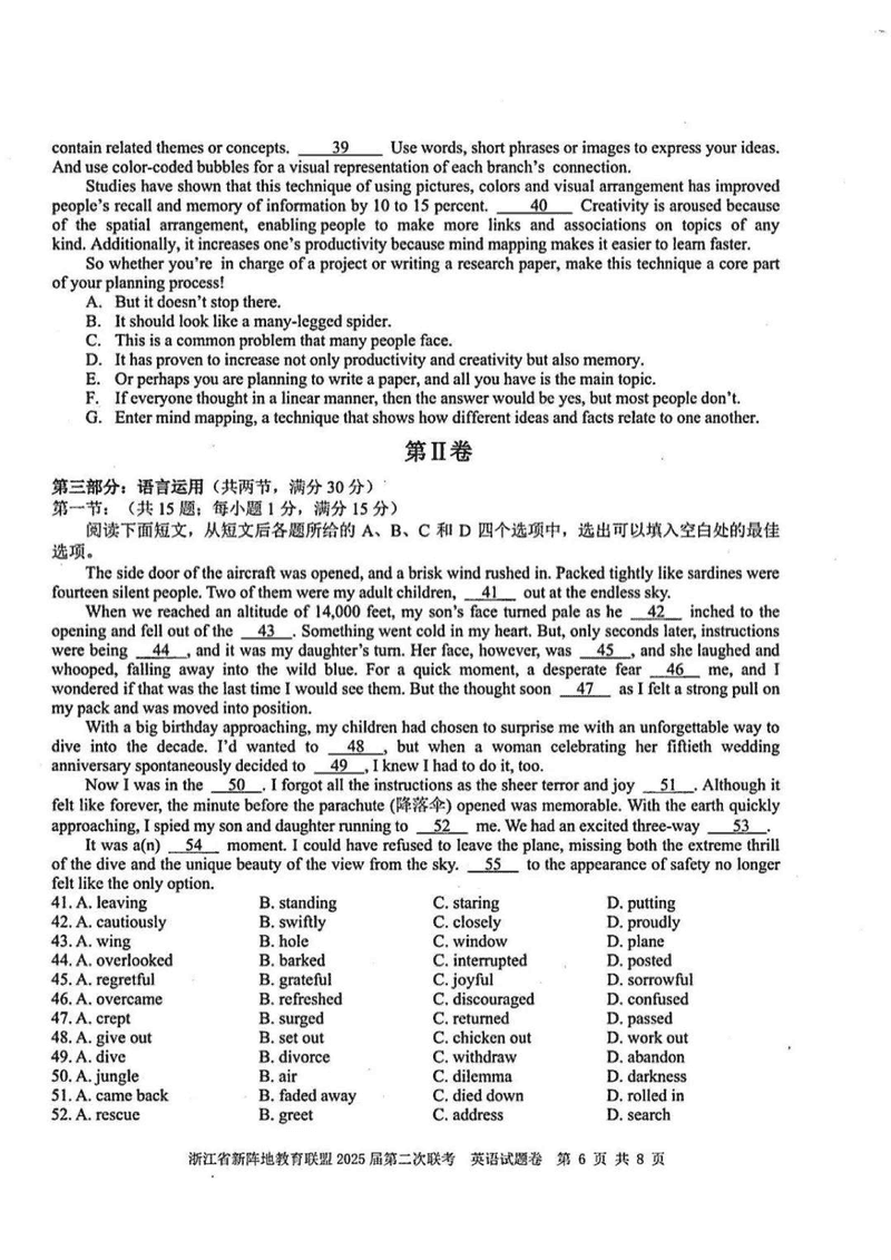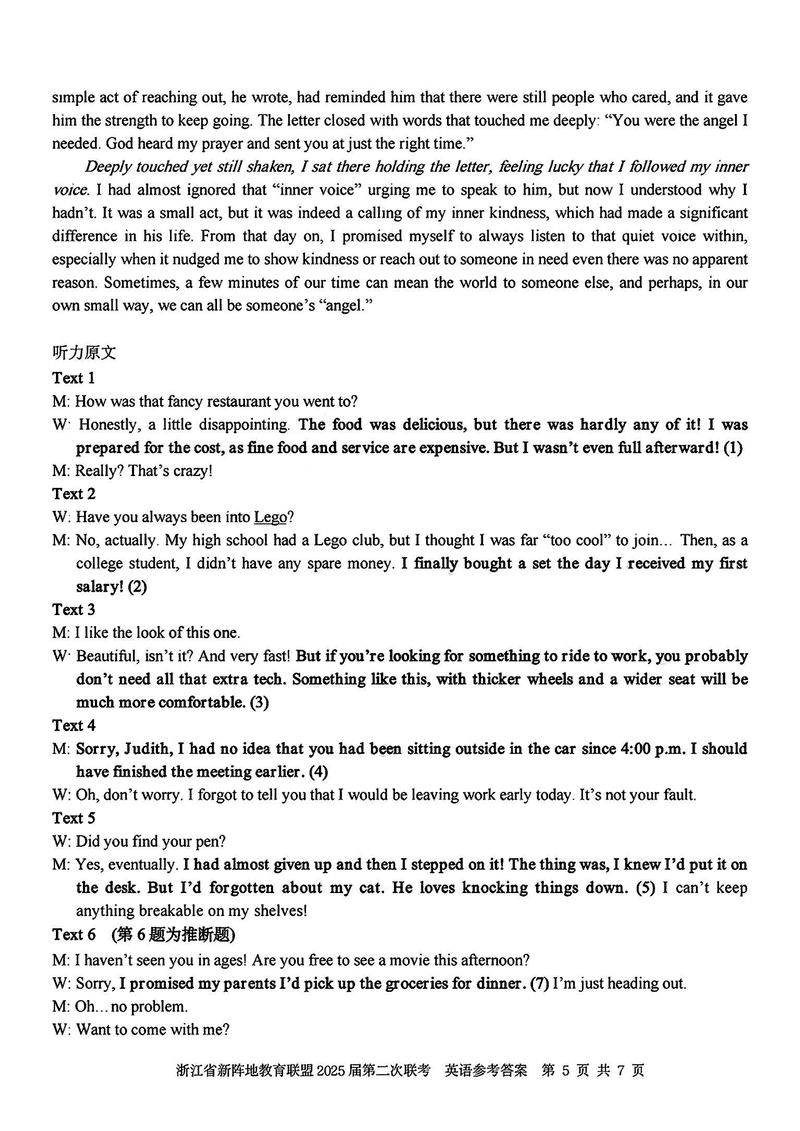 浙江新阵地教育联盟2025届高三第二次联考英语试题及答案