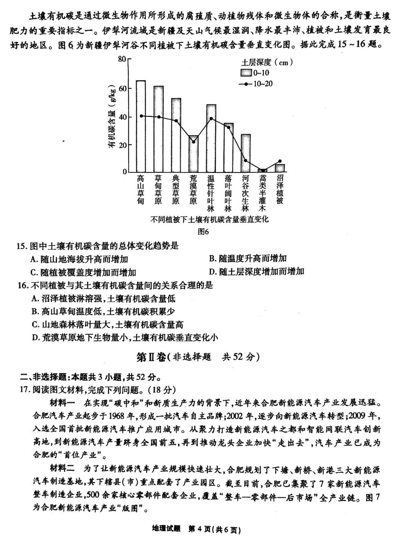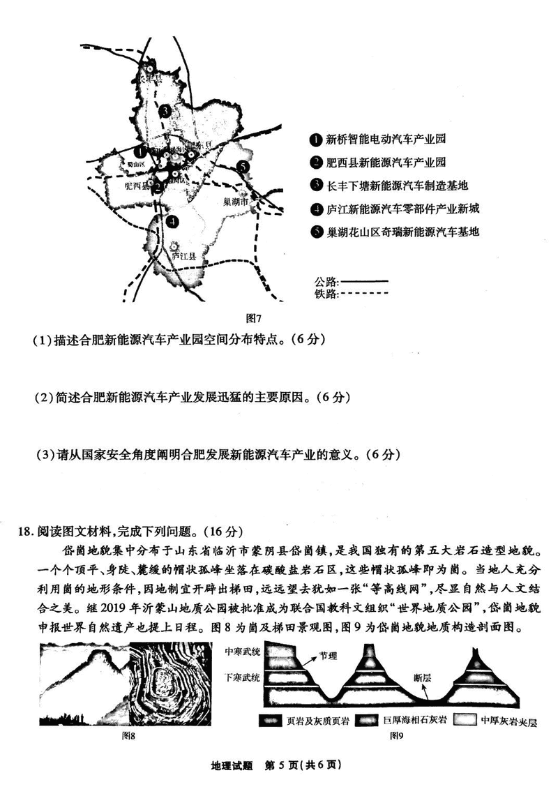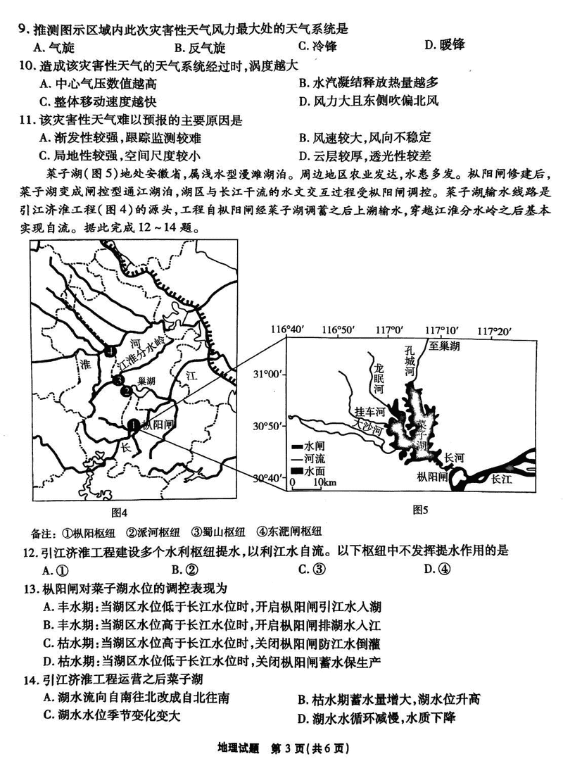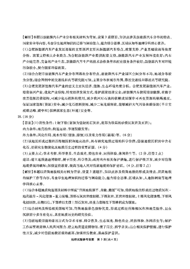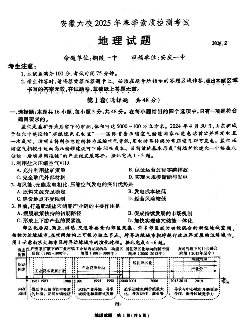 安徽六校2025年高三2月春季素质检测地理试题及答案