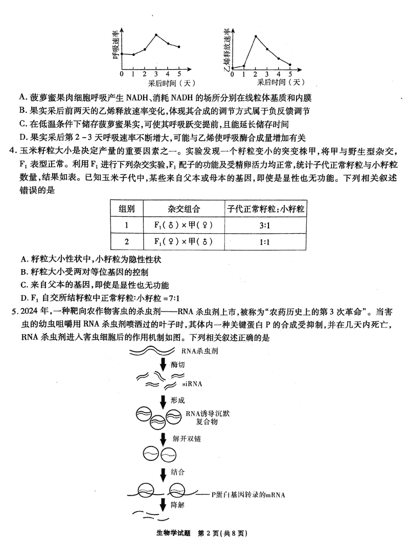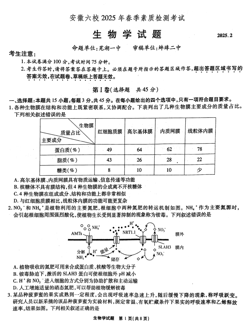 安徽六校2025年高三2月春季素质检测生物试题及答案