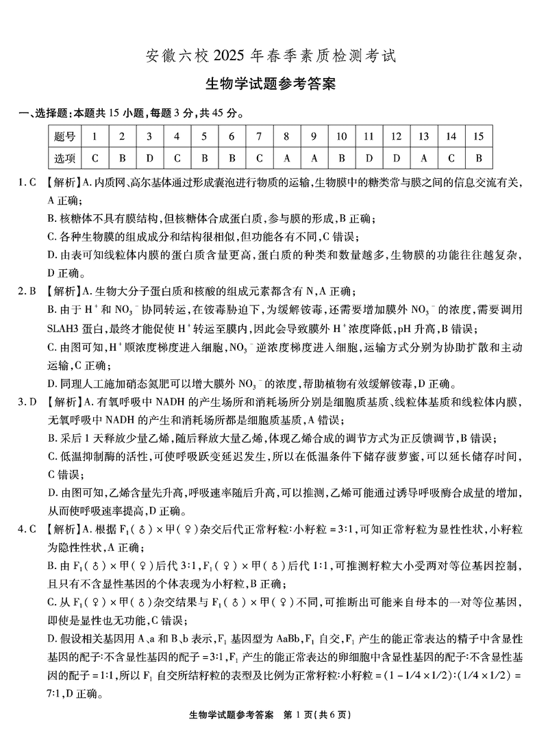 安徽六校2025年高三2月春季素质检测生物考试已于近日开考,为方便考生考后及时查看考试情况,查漏补缺、弥补不足,本文整理了试题答案解析相关信息!