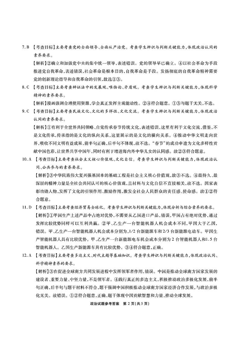 安徽六校2025年高三2月春季素质检测政治试题及答案