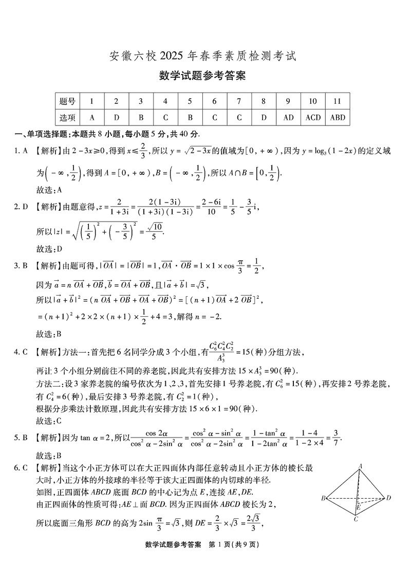 安徽六校2025年高三2月春季素质检测数学考试已于近日开考,为方便考生考后及时查看考试情况,查漏补缺、弥补不足,本文整理了试题答案解析相关信息!