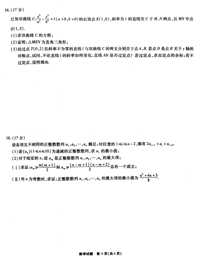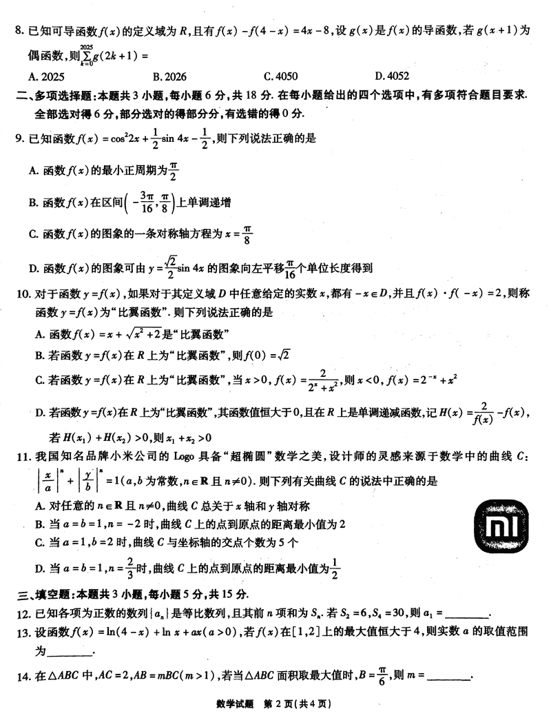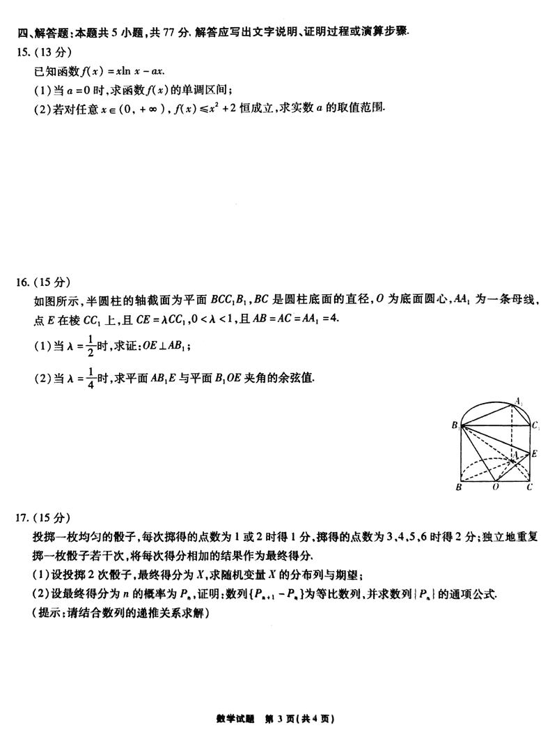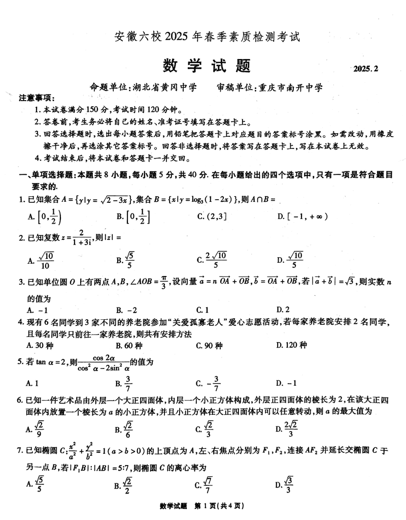 安徽六校2025年高三2月春季素质检测数学试题及答案