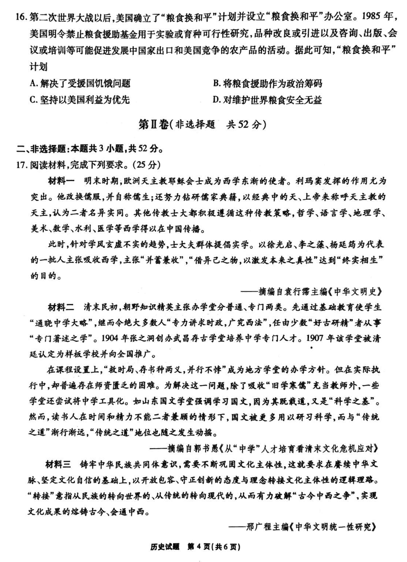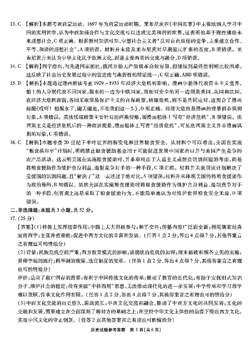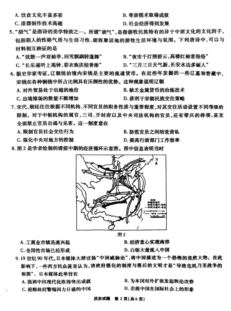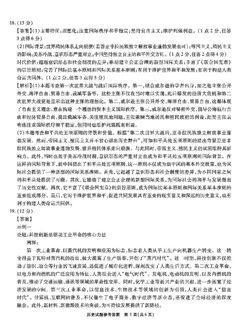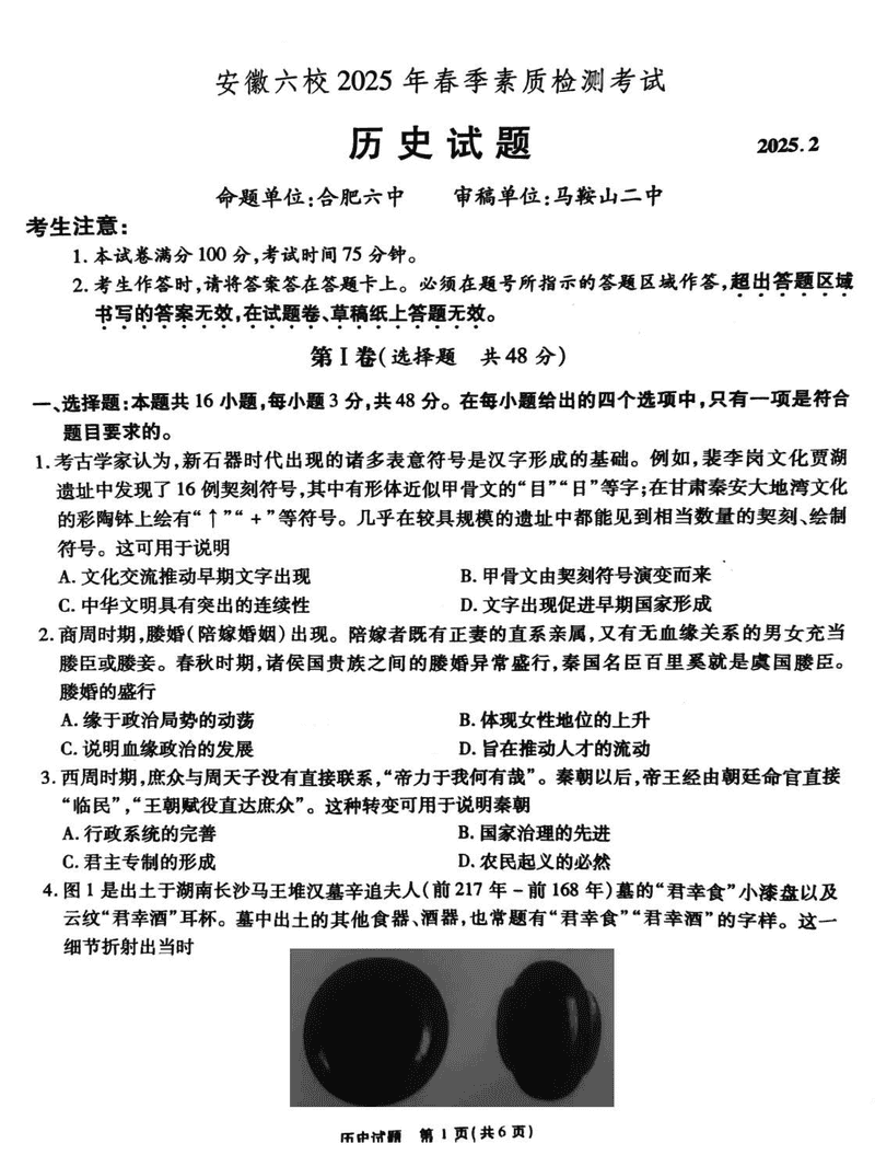 安徽六校2025年高三2月春季素质检测历史试题及答案