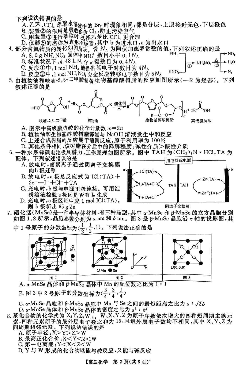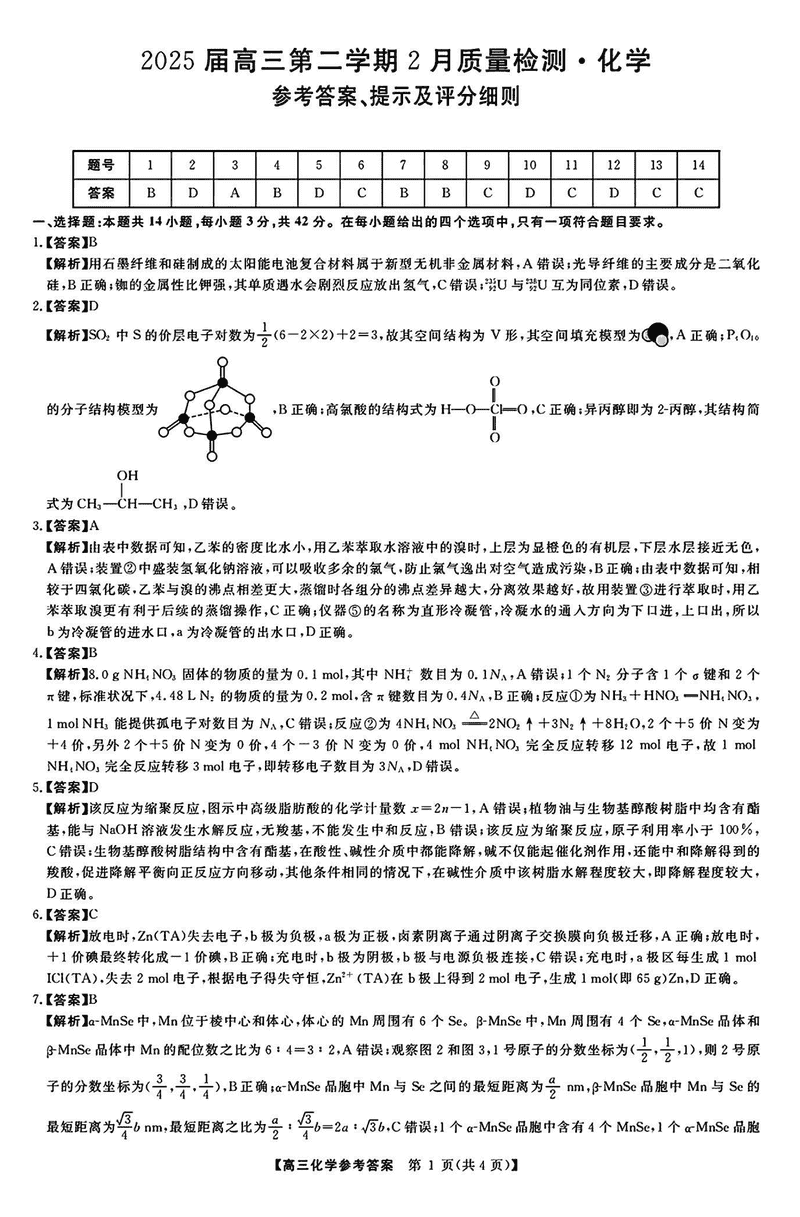 2025届金科大联考高三下学期2月质量检测化学试题及答案