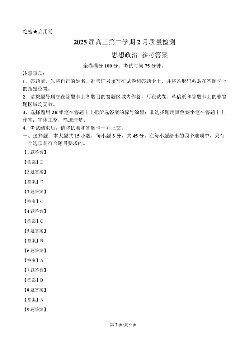 2025届金科大联考高三下学期2月质量检测政治考试已于近日开考,为方便考生考后及时查看考试情况,查漏补缺、弥补不足,本文整理了试题答案解析相关信息!