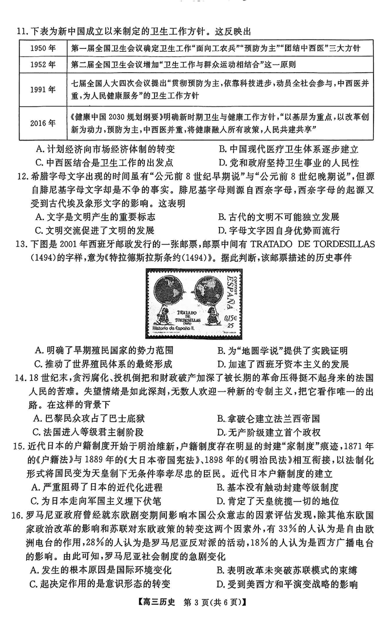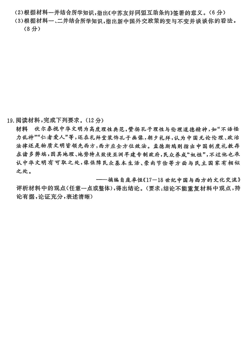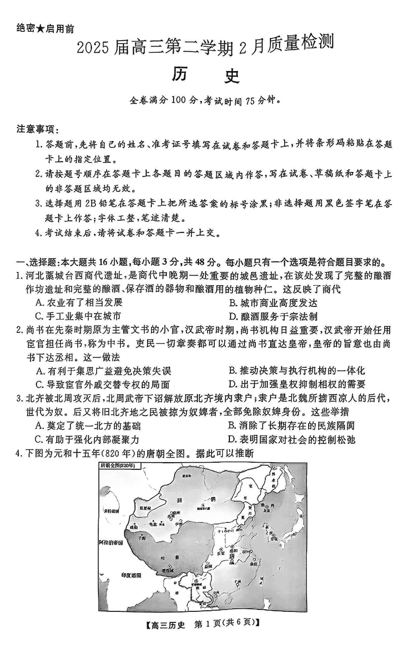 2025届金科大联考高三下学期2月质量检测历史试题及答案