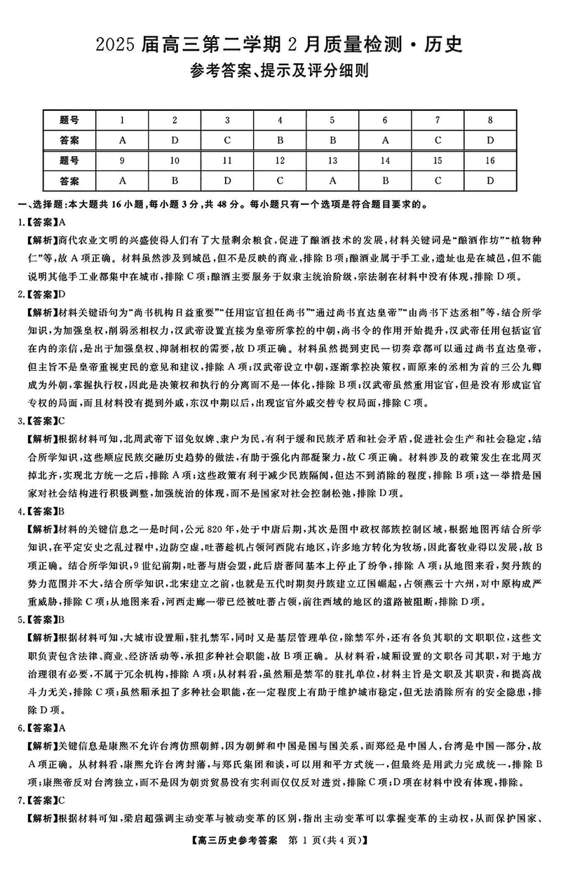 2025届金科大联考高三下学期2月质量检测历史考试已于近日开考,为方便考生考后及时查看考试情况,查漏补缺、弥补不足,本文整理了试题答案解析相关信息!
