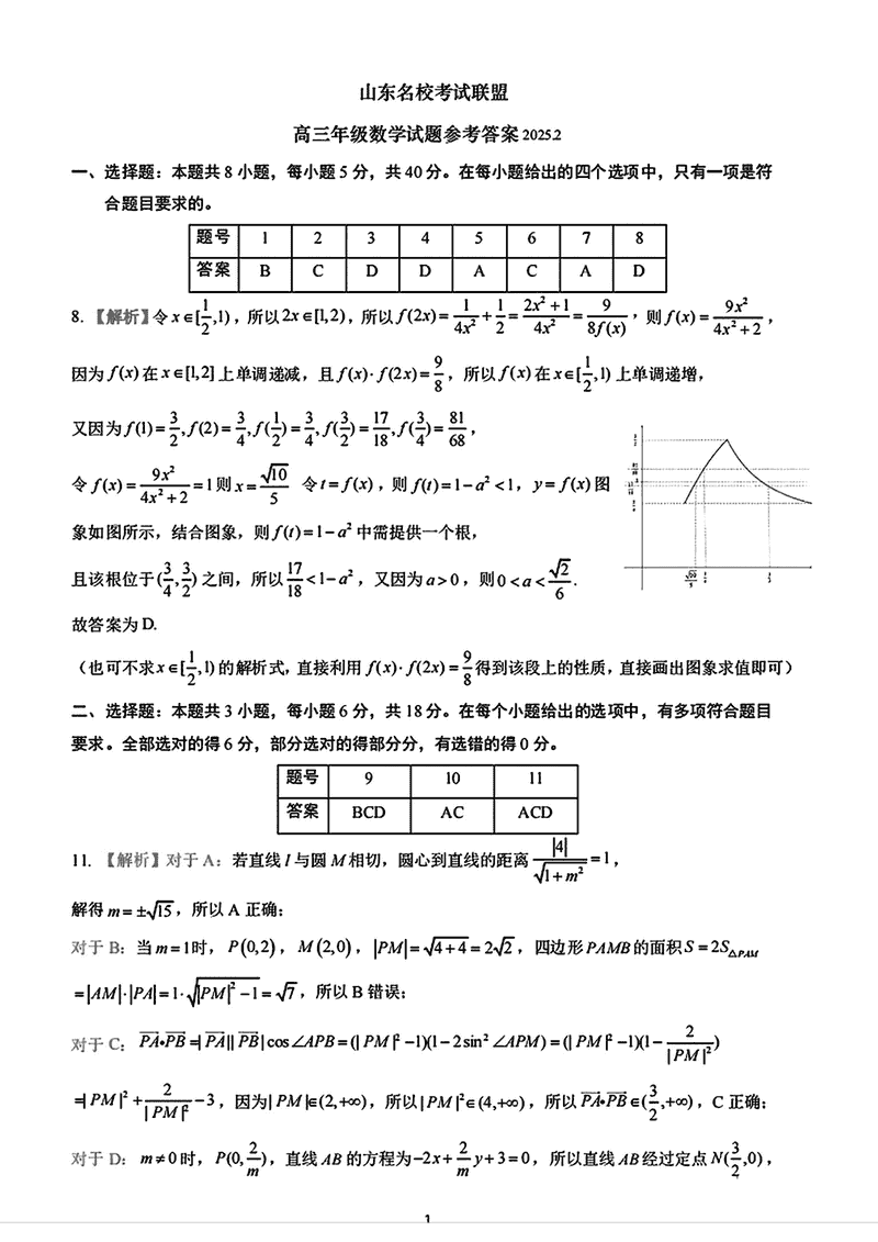 山东名校联盟2025年2月高三下学期开学联考数学考试已于近日开考,为方便考生考后及时查看考试情况,查漏补缺、弥补不足,本文整理了试题答案解析相关信息!