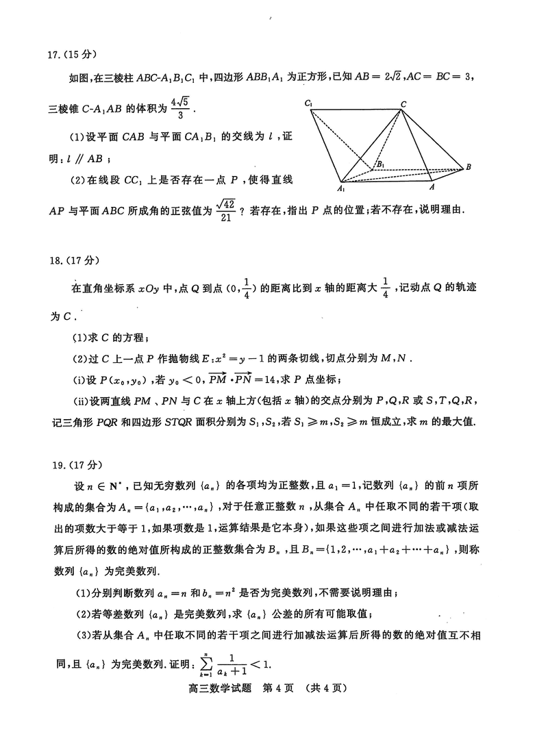 山东名校联盟2025年2月高三下学期开学联考数学试题及答案