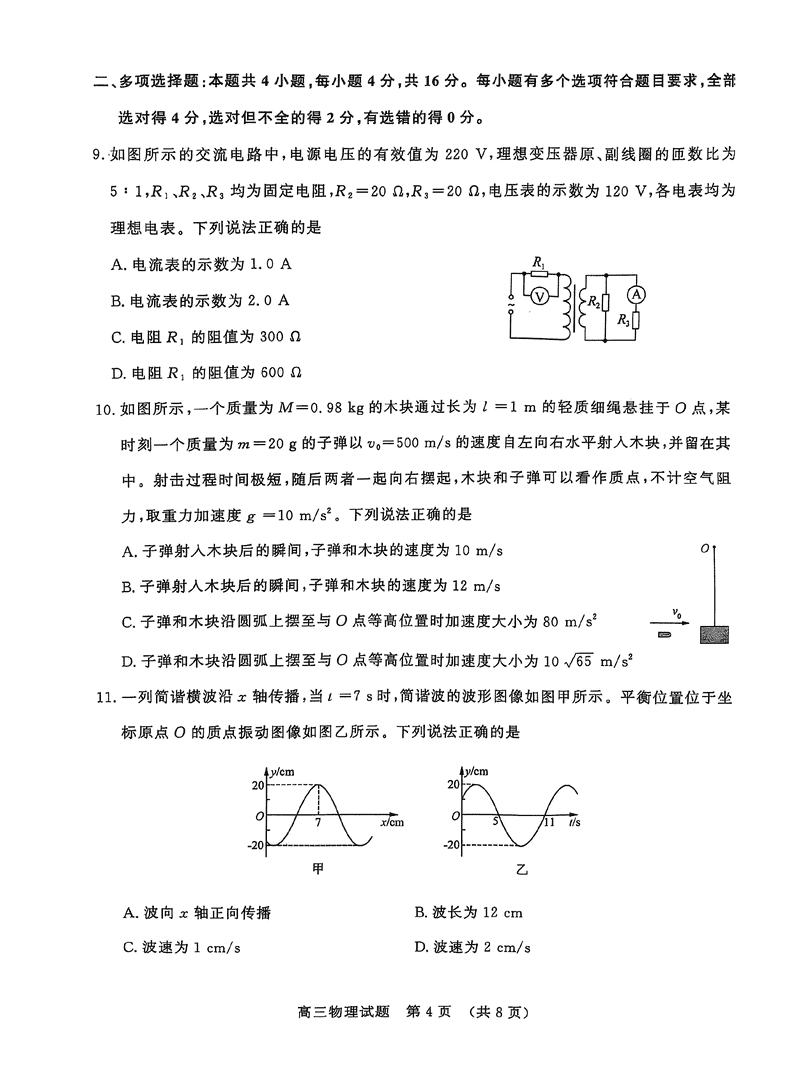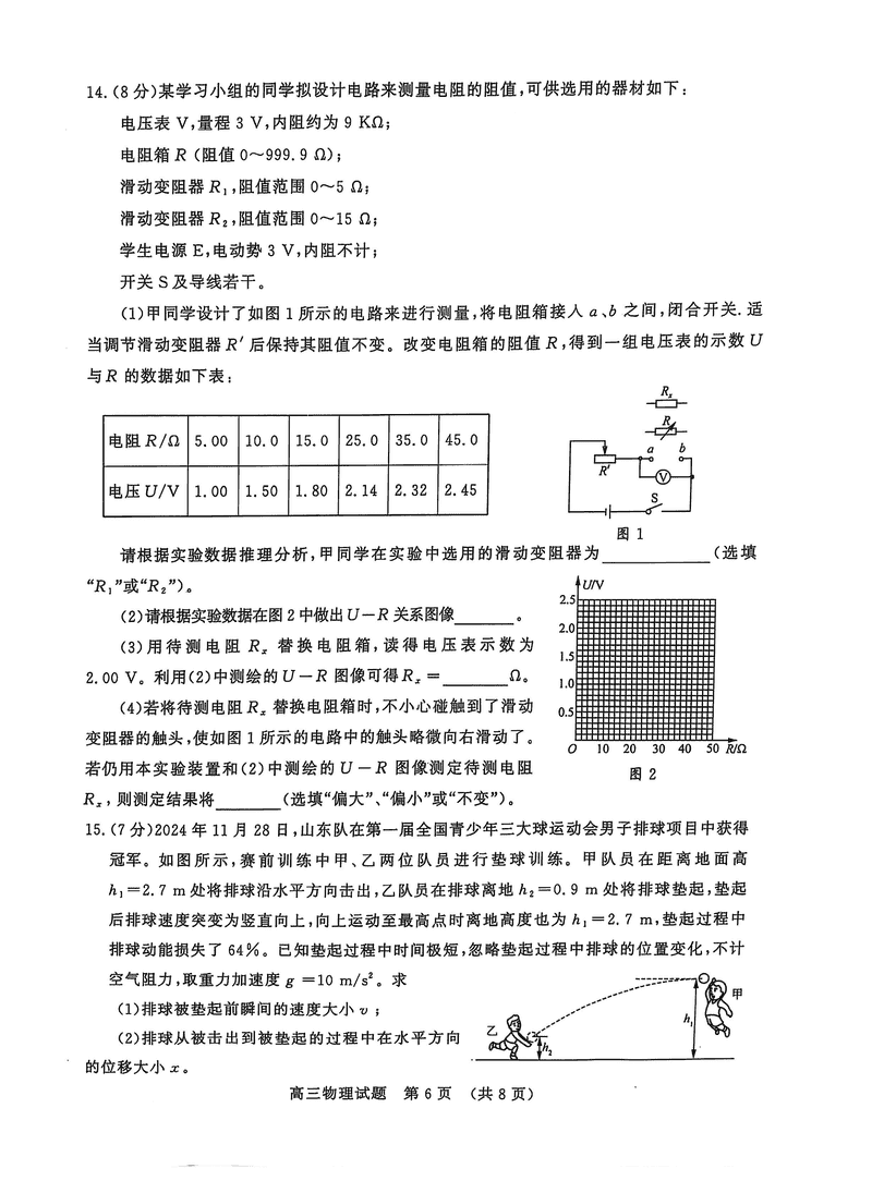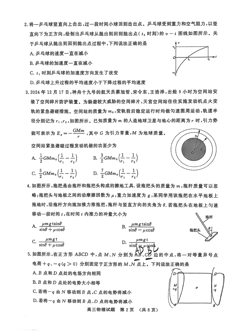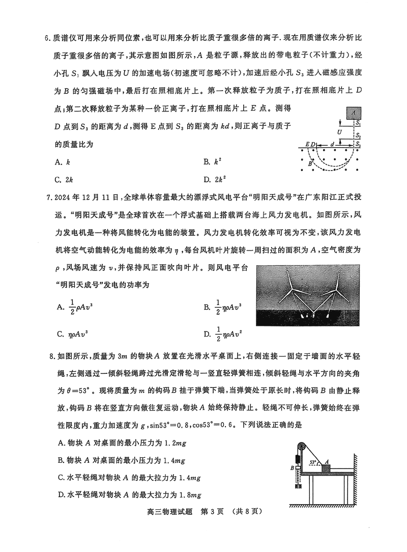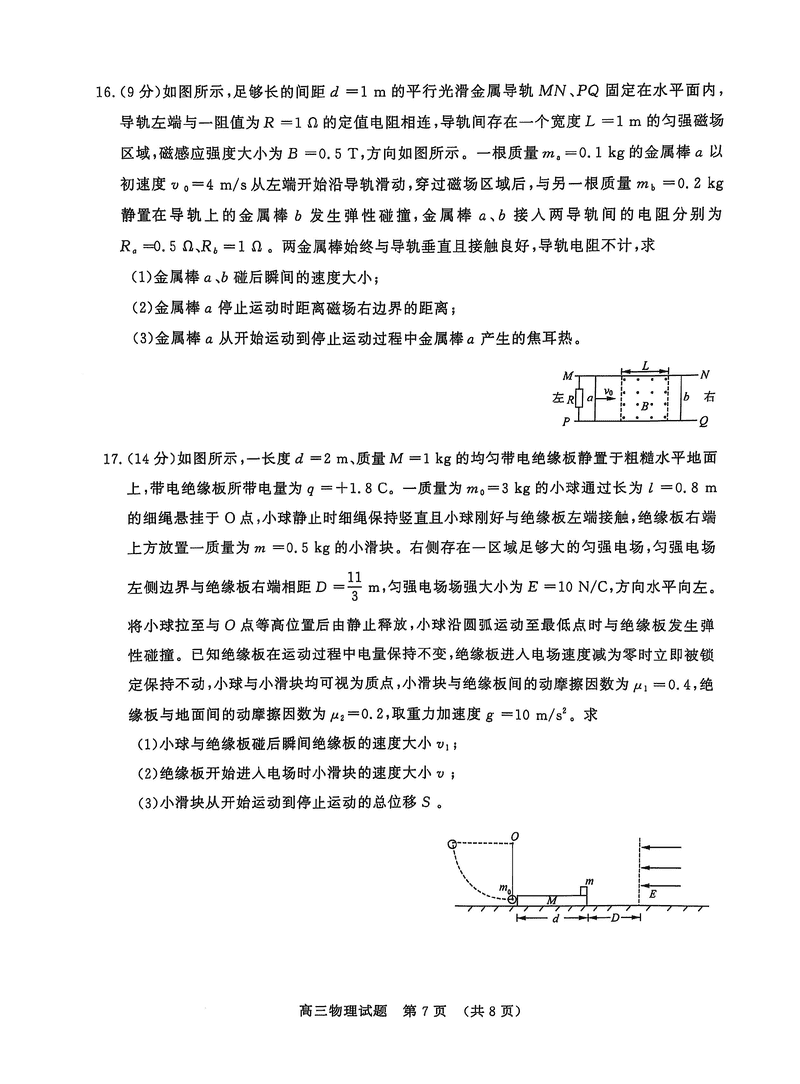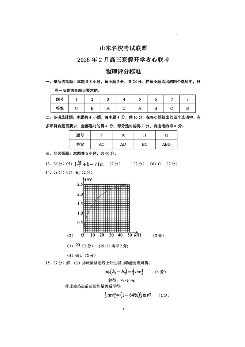 山东名校联盟2025年2月高三下学期开学联考物理试题及答案