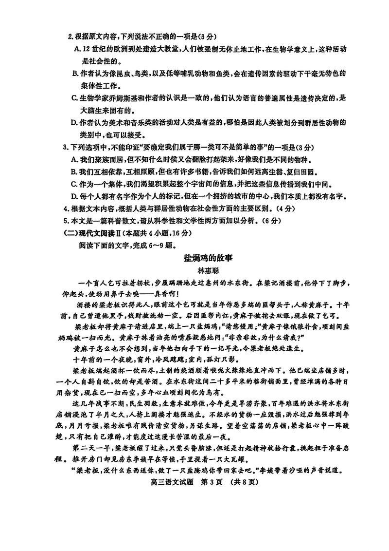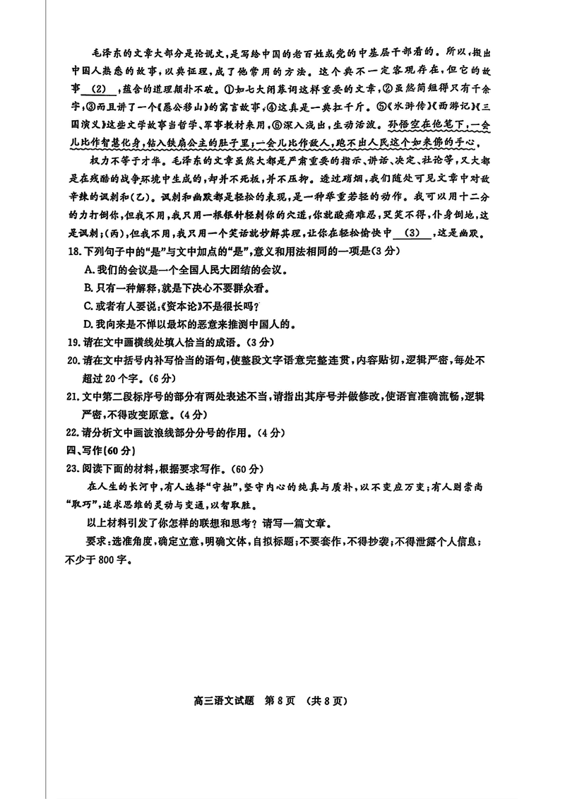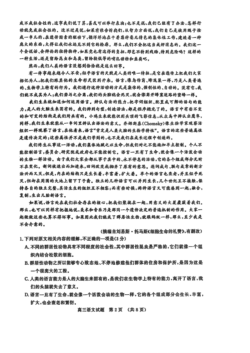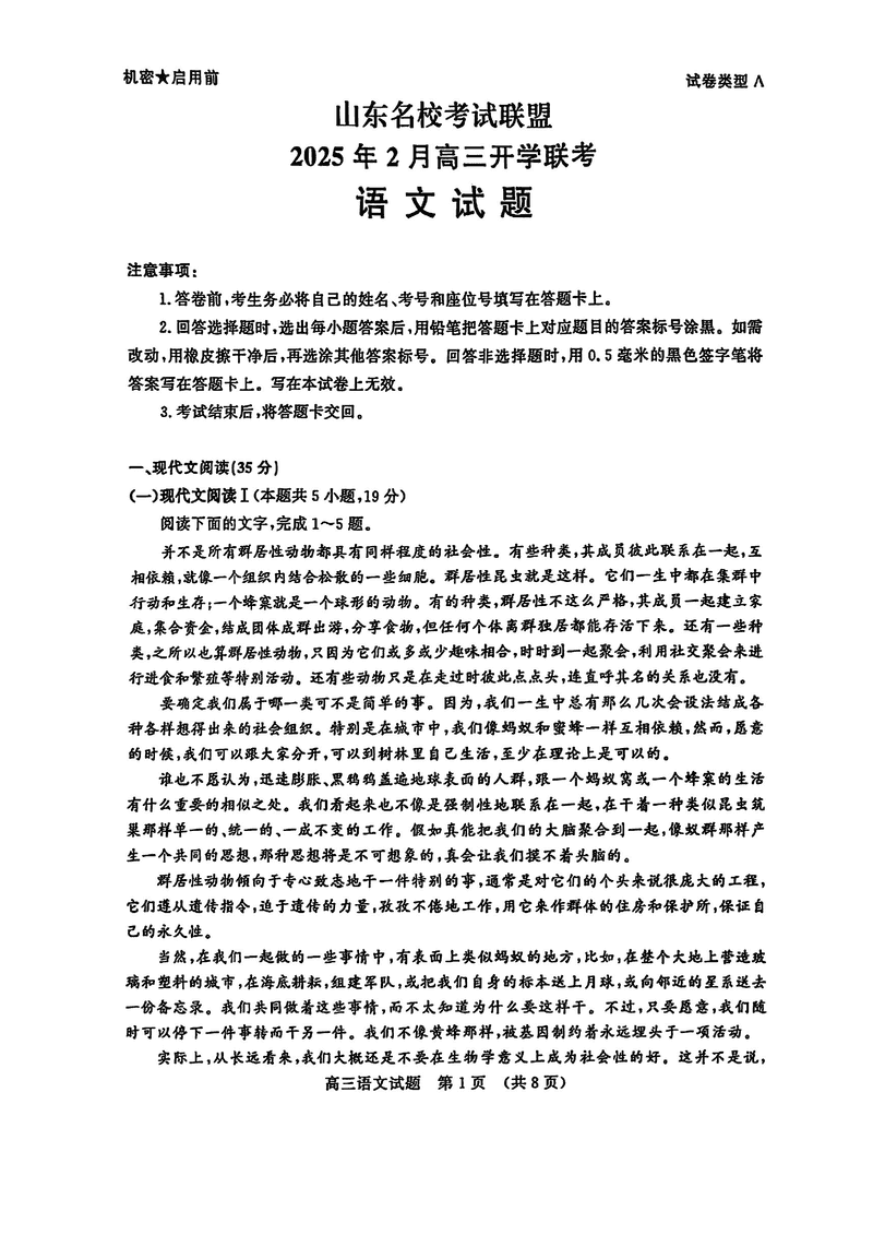 山东名校联盟2025年2月高三下学期开学联考语文试题及答案
