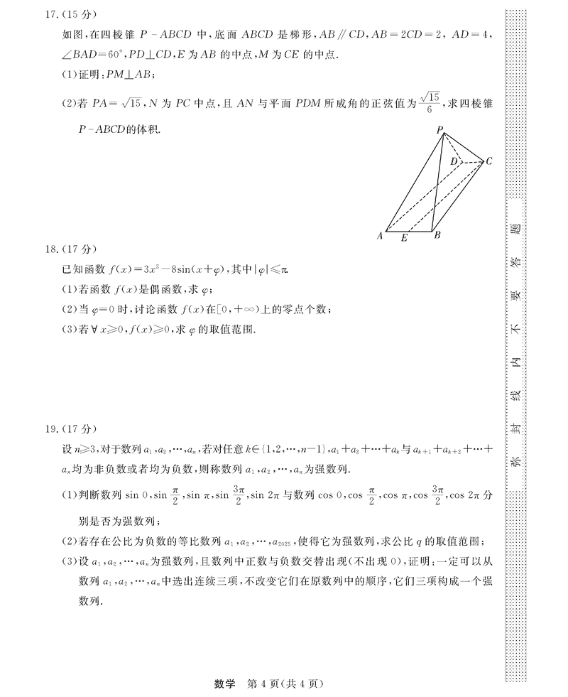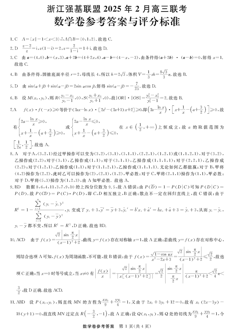 浙江强基联盟2025年2月高三下学期联考数学试题及答案
