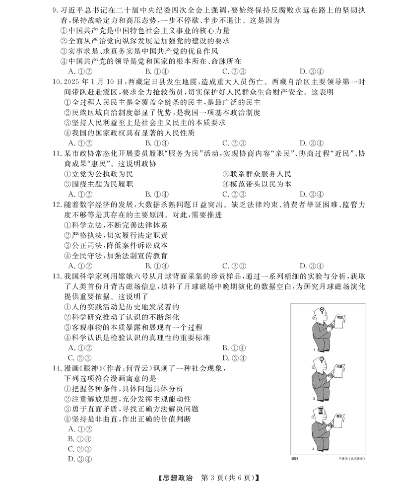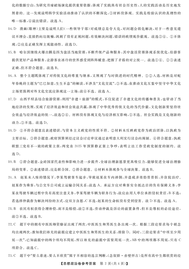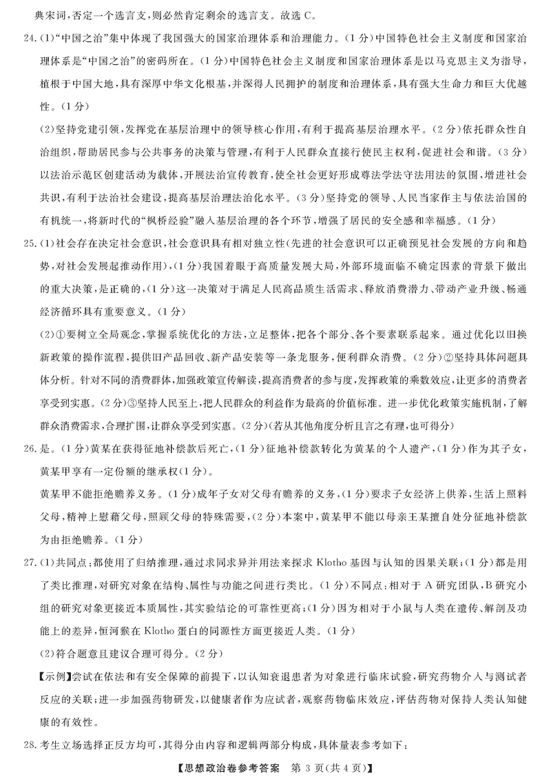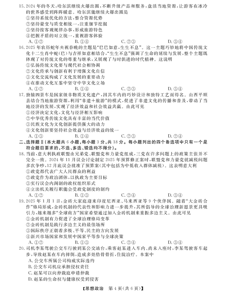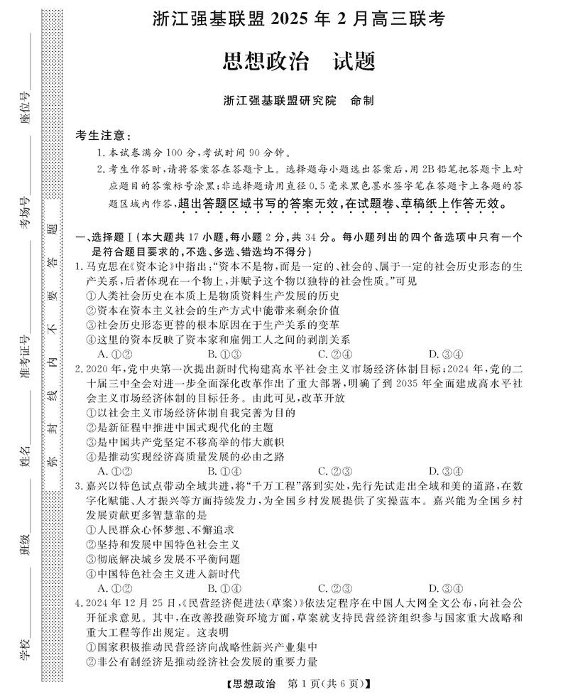 浙江强基联盟2025年2月高三下学期联考政治试题及答案