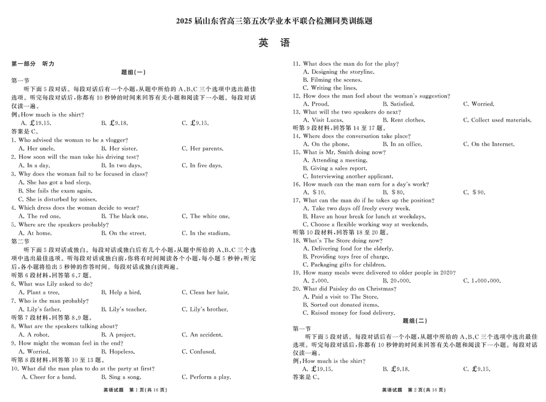 山东齐鲁名校2025届高三下学期第五次学业水平联合检测英语考试已于近日开考,为方便考生考后及时查看考试情况,查漏补缺、弥补不足,本文整理了试题答案解析相关信息!