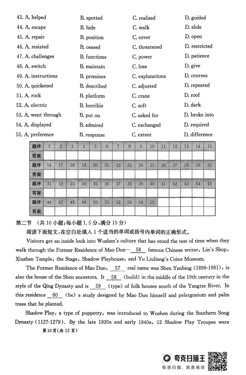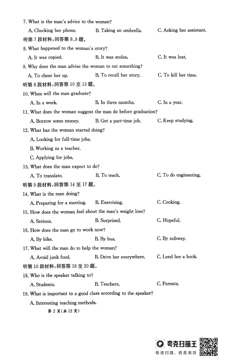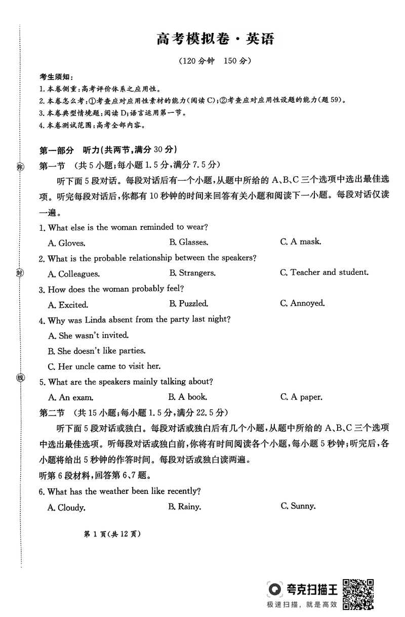 甘肃省2025届高三下学期高考模拟卷英语试题及答案 时间:2025-02-19 甘肃 英语试题 甘肃省2025届高三下学期高考模拟卷英语考试已于近日开考,为方便考生考后及时查看考试情况,查漏补缺、弥补不足,本文整理了试题答案解析相关信息! 汇总:甘肃省2025届高三下学期高考模拟卷试题及答案汇总 英语试题及答案解析