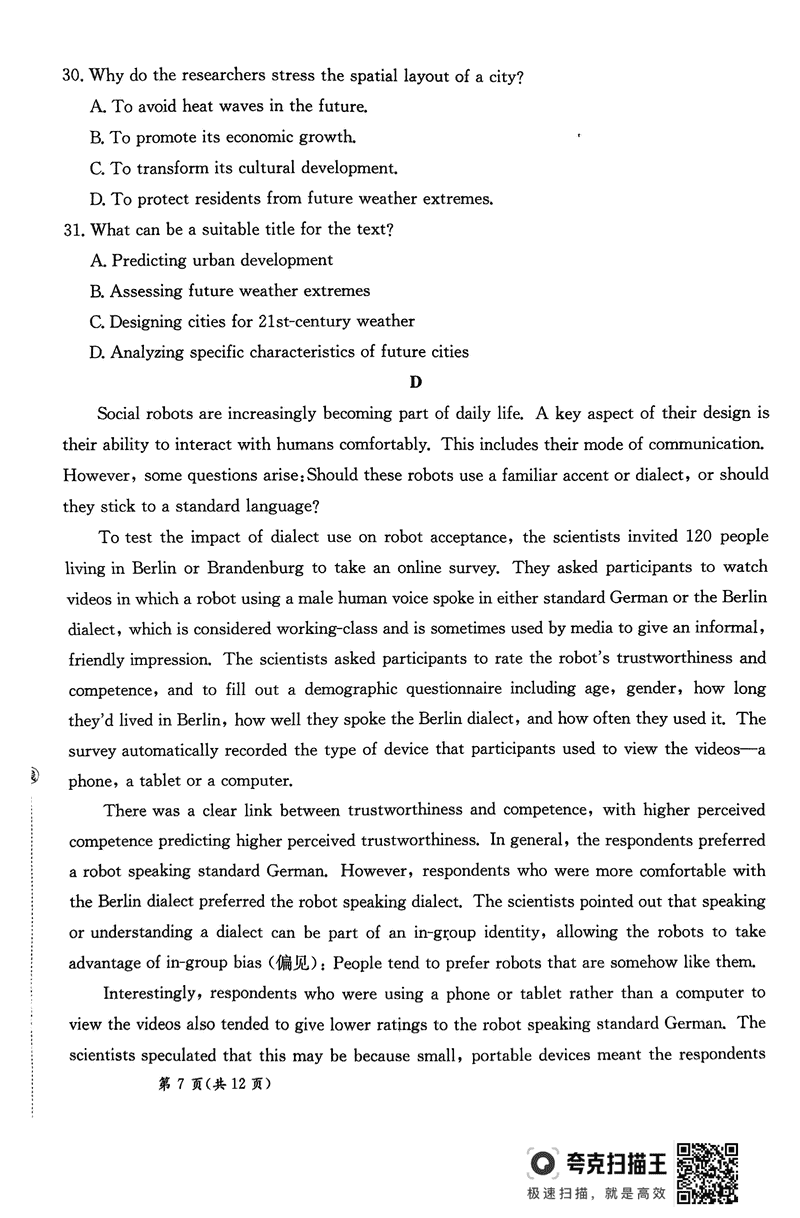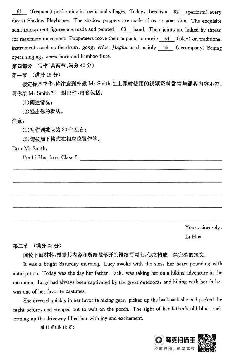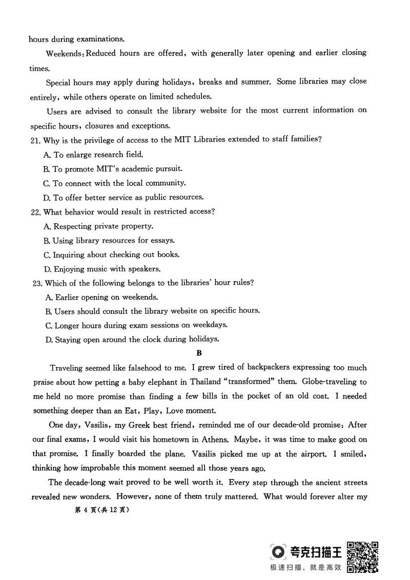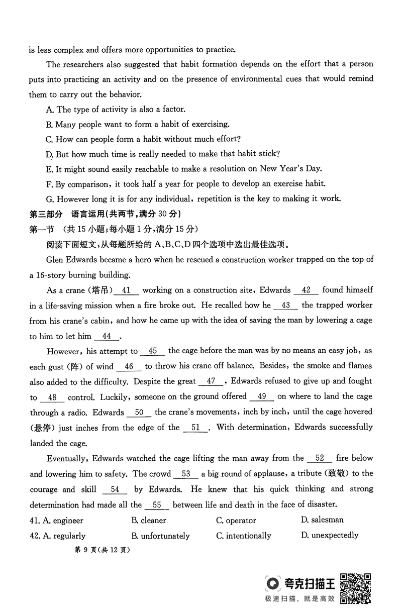 甘肃省2025届高三下学期高考模拟卷英语试题及答案 时间:2025-02-19 甘肃 英语试题 甘肃省2025届高三下学期高考模拟卷英语考试已于近日开考,为方便考生考后及时查看考试情况,查漏补缺、弥补不足,本文整理了试题答案解析相关信息! 汇总:甘肃省2025届高三下学期高考模拟卷试题及答案汇总 英语试题及答案解析