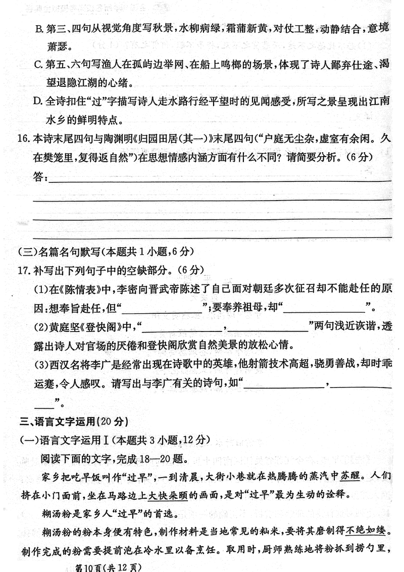 甘肃省2025届高三下学期高考模拟卷语文试题及答案 时间:2025-02-19 甘肃 语文试题 甘肃省2025届高三下学期高考模拟卷语文考试已于近日开考,为方便考生考后及时查看考试情况,查漏补缺、弥补不足,本文整理了试题答案解析相关信息! 汇总:甘肃省2025届高三下学期高考模拟卷试题及答案汇总 语文试题及答案解析