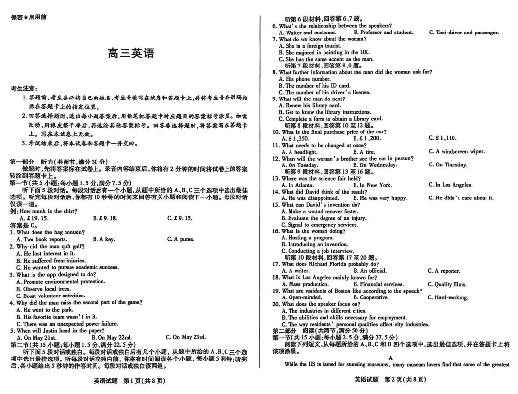 湖南2025届高三天一大联考2月联考英语试题及答案 时间:2025-02-19 湖南 英语试题 湖南2025届高三天一大联考2月联考英语考试已于近日开考,为方便考生考后及时查看考试情况,查漏补缺、弥补不足,本文整理了试题答案解析相关信息! 汇总:湖南2025届高三天一大联考2月联考试题及答案汇总 英语试题及答案解析