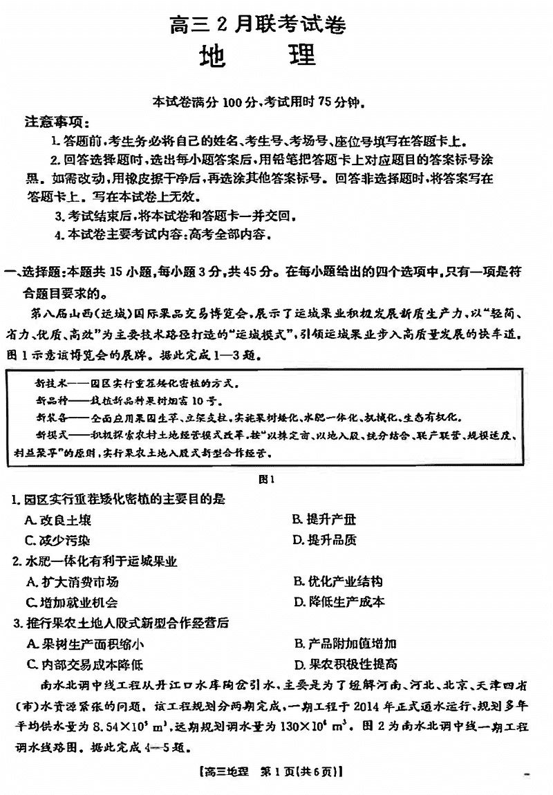 湖北鄂东新领先协作体2025届高三下学期2月联考地理试题及答案
