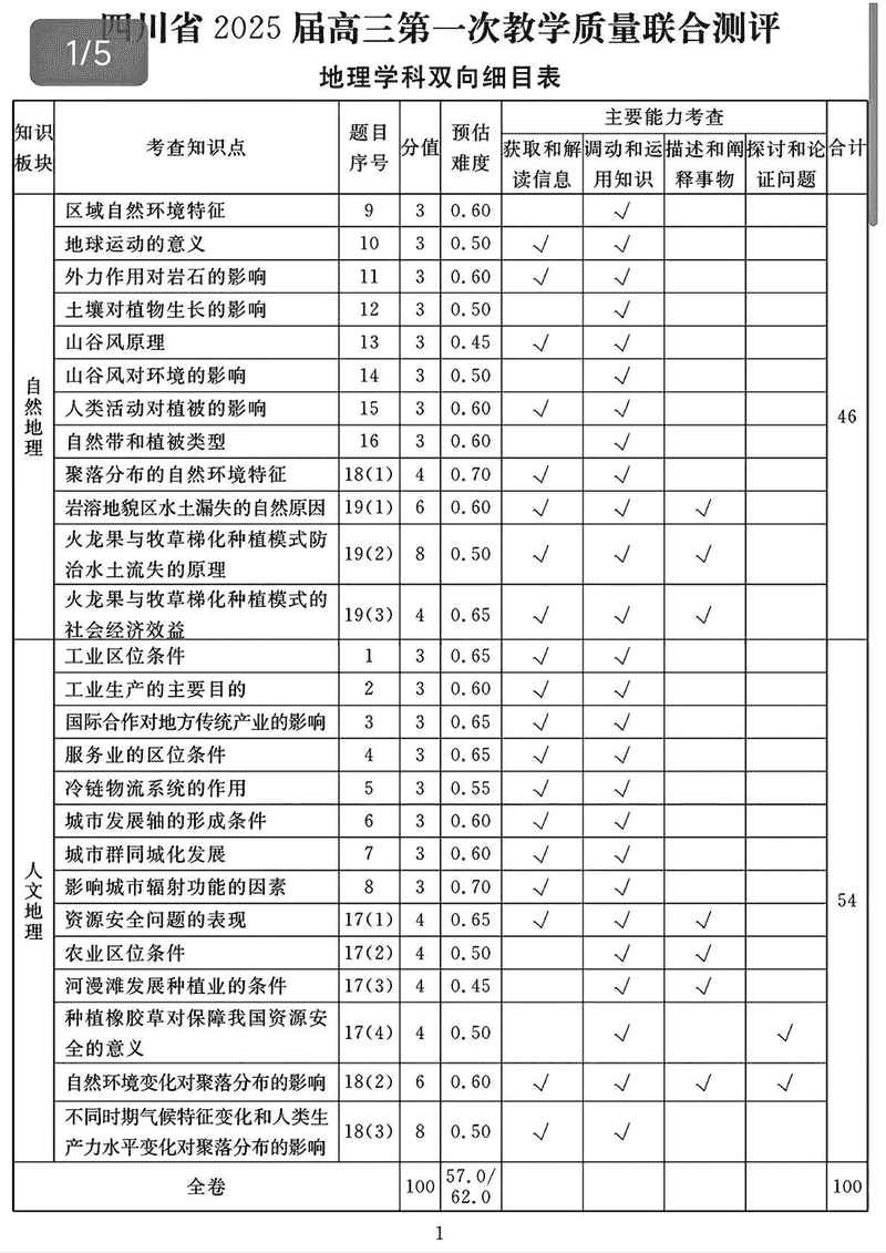 2025届四川省高三下学期第一次教学质量联合测评地理考试已于近日开考,为方便考生考后及时查看考试情况,查漏补缺、弥补不足,本文整理了试题答案解析相关信息!