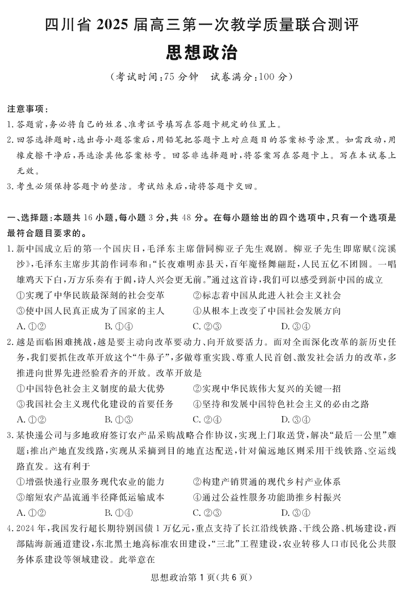 2025届四川省高三下学期第一次教学质量联合测评英语考试已于近日开考,为方便考生考后及时查看考试情况,查漏补缺、弥补不足,本文整理了试题答案解析相关信息!