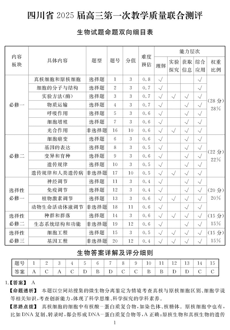 2025届四川省高三下学期第一次教学质量联合测评生物考试已于近日开考,为方便考生考后及时查看考试情况,查漏补缺、弥补不足,本文整理了试题答案解析相关信息!